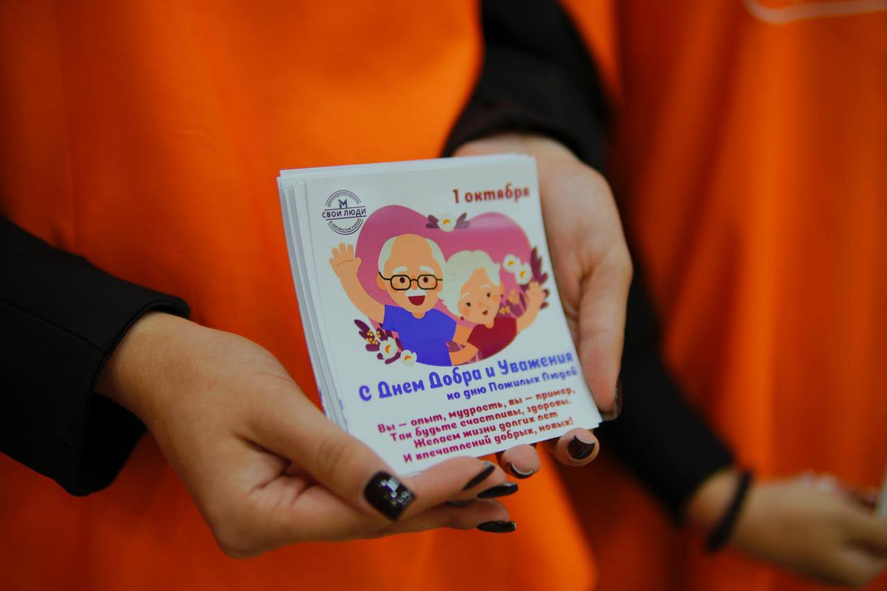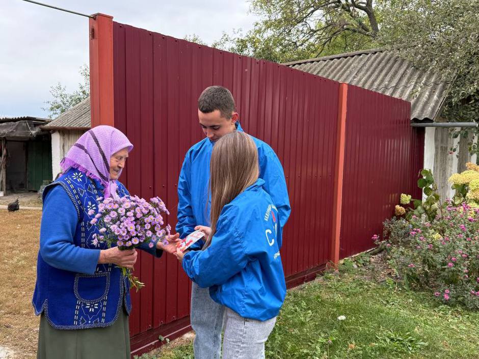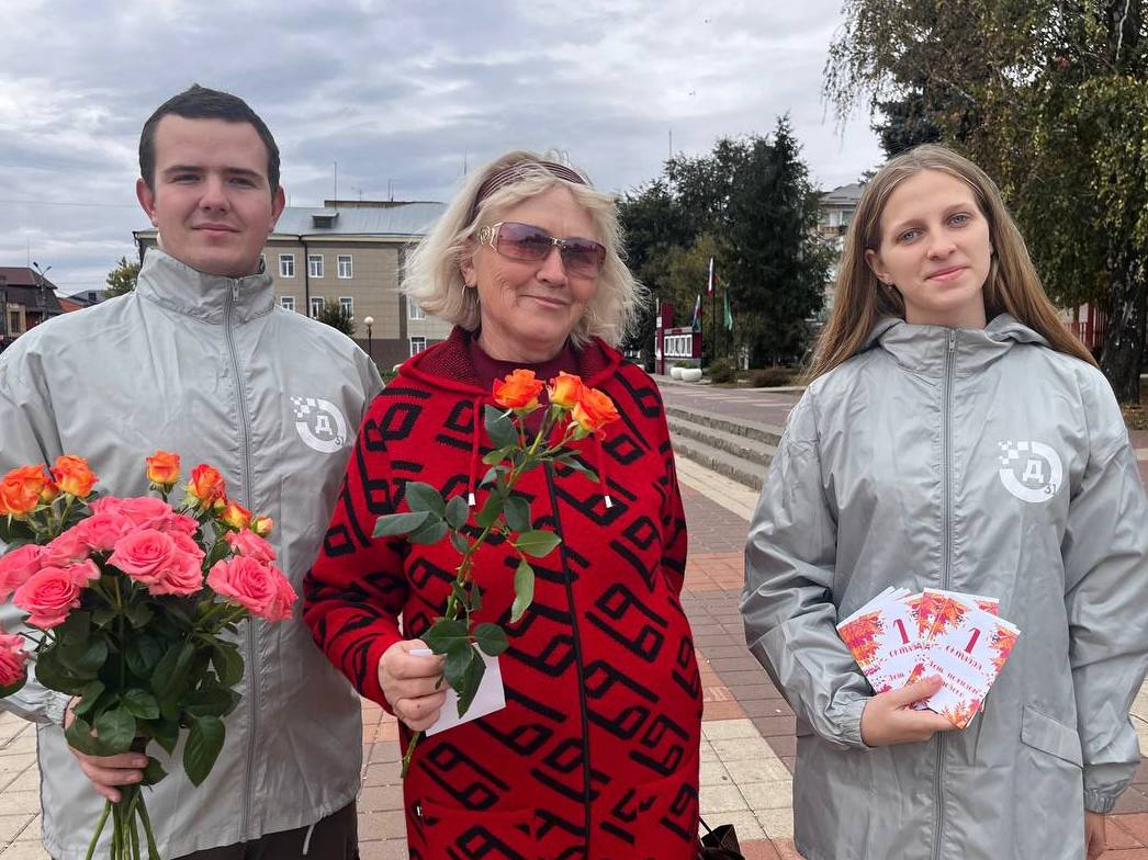 Активисты Валуйского центра молодёжных инициатив вышли на улицы города, чтобы подарить пожилым жителям поздравительные открытки и цветы