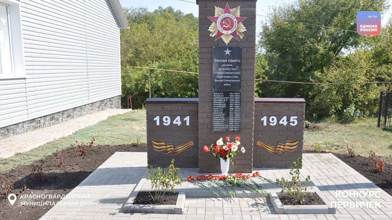 В Красногвардейском округе партийцы открыли Мемориальную зону «Память, которой не будет забвенья». Патриотическое пространство создано благодаря победе в конкурсе «первичек» и представляет собой стелу с фамилиями героев-земляков, участников Великой Отечественной войны. Мемориал посвящен жителям села, из которых 37 человек ушли на фронт, 18 из них погибли, сражаясь против немецко-фашистских захватчиков.