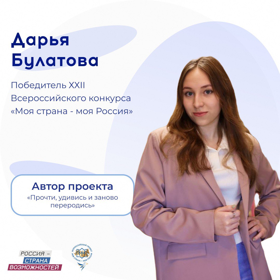 Не менее яркой стала победа Дарьи Булатовой в номинации «Интеллектуальная собственность моей страны». Её проект «Прочти, удивись и заново переродись» призван вернуть подростков к чтению через создание книжного блога и организацию тематических мероприятий.