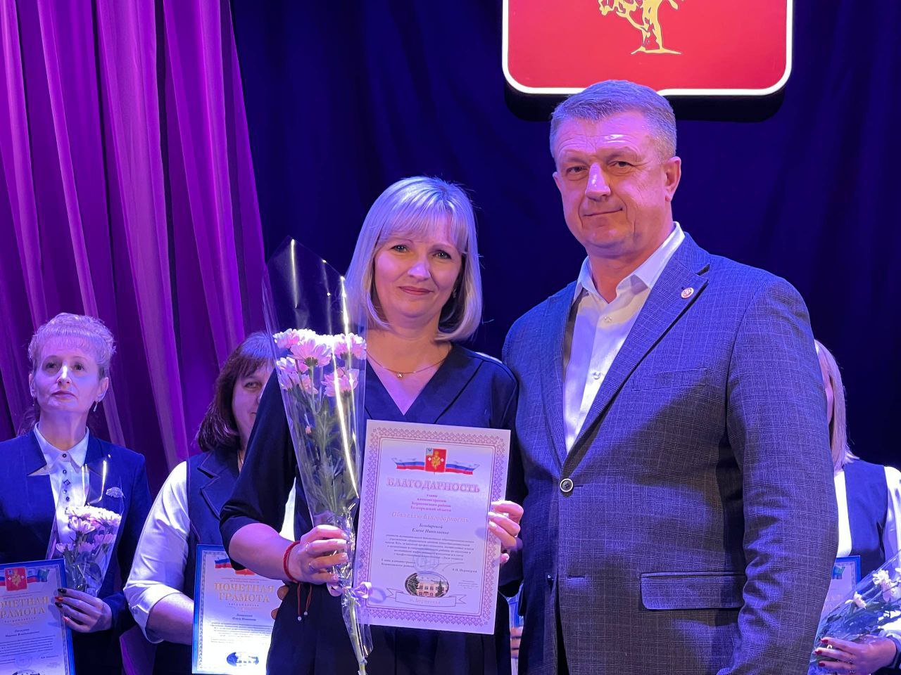 · Благодарность Министерства образования Белгородской области получили: Анжела Геннадьевна Жданова, Алексей Петрович Мухин, Ирина Григорьевна Радченко, Анна Вячеславовна Ткаченко и Маргарита Ивановна Ямпольская.
