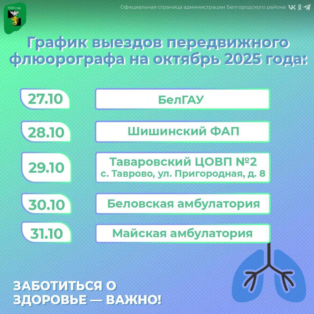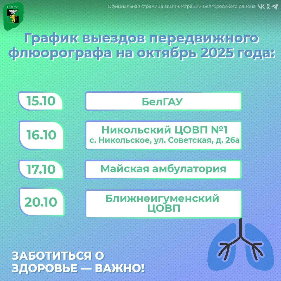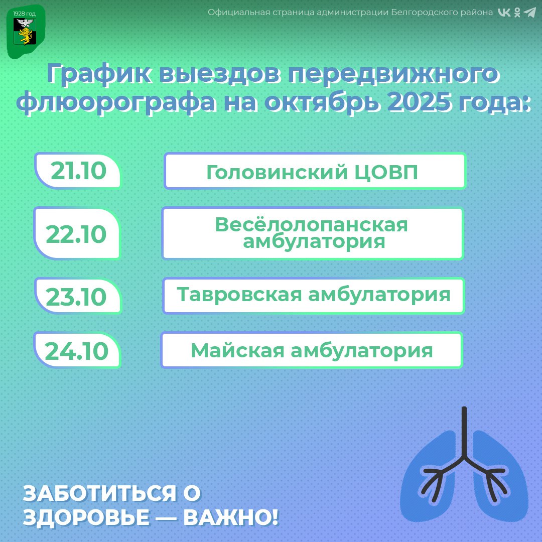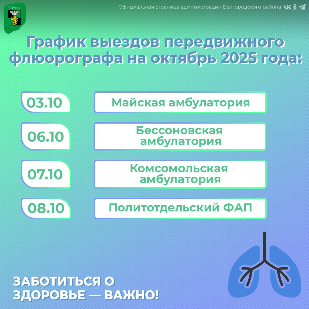 Следите за расписанием и местами работы флюорографа, чтобы не пропустить возможность проверить своё здоровье.
