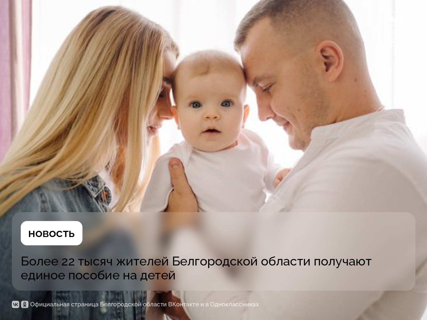Более 22 тысяч жителей Белгородской области получают единое пособие на детей
