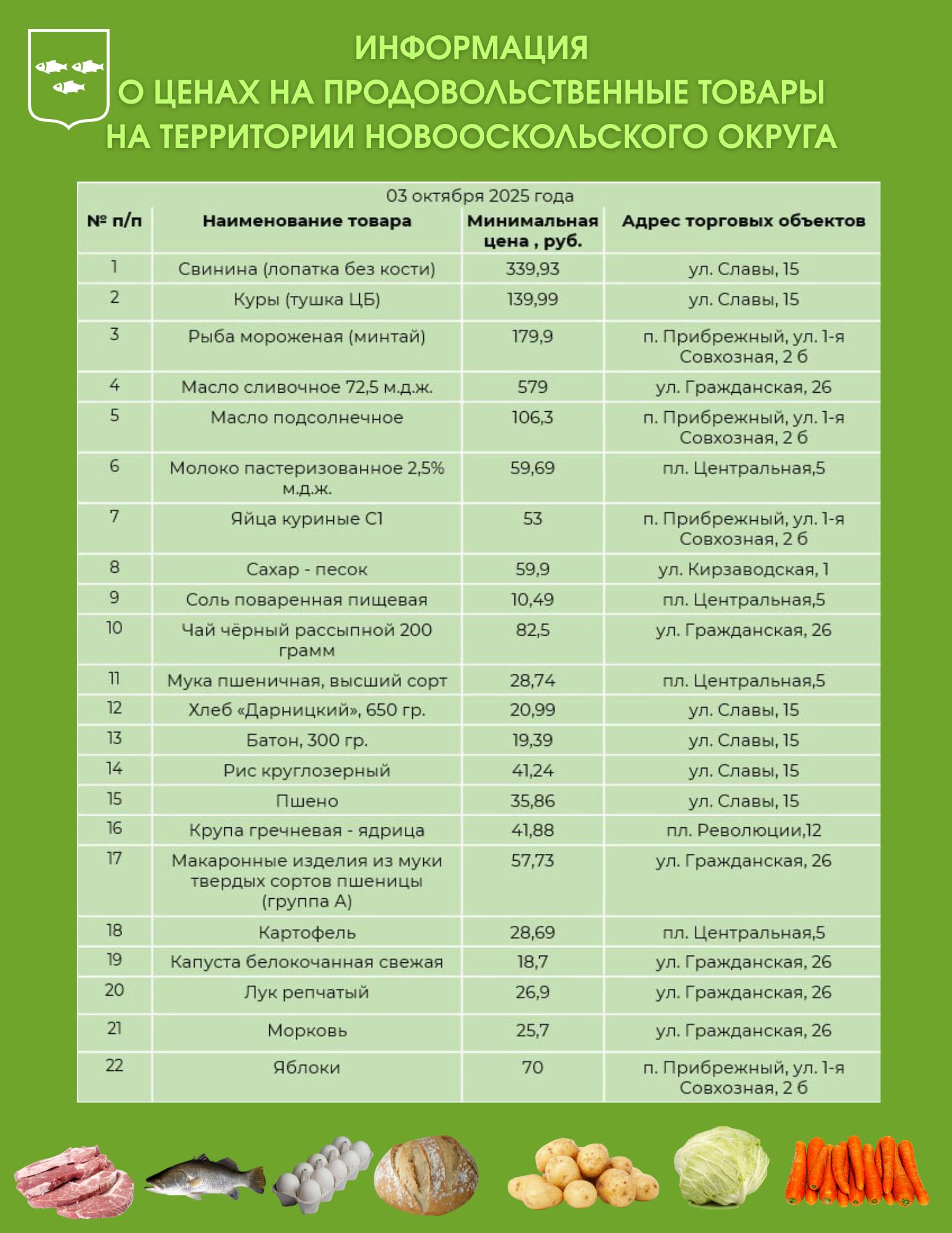 Делюсь с вами актуальной подборкой минимальных цен на продовольственные товары на территории Новооскольского муниципального округа.