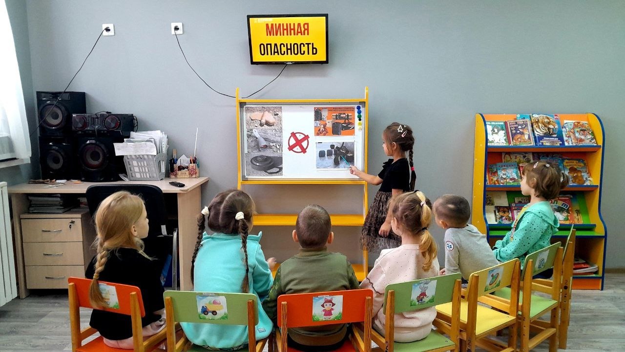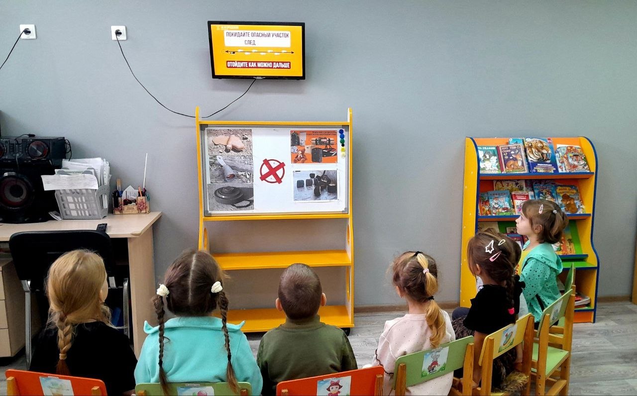 На занятии дети рассмотрели изображения мин и предметов, которые могут быть опасными. Для закрепления знаний им показали видеоролик «Минная опасность», который наглядно объяснил, почему важно быть внимательным.