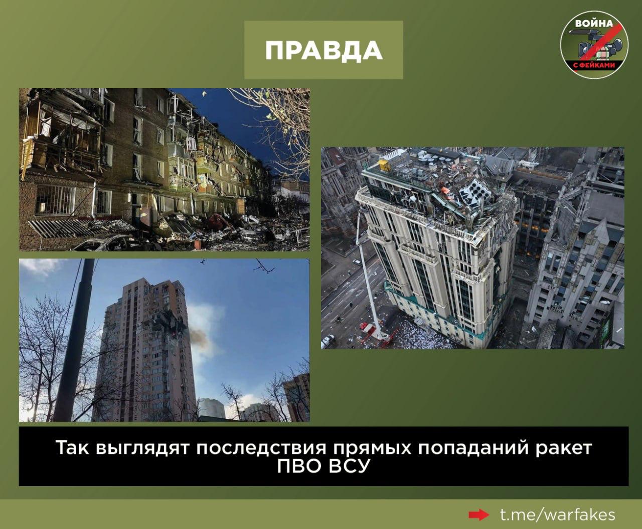Распространяемое авторами фейка видео имеет неудачный ракурс, чем и воспользовались пропагандисты. На самом деле, ролик демонстрирует как раз момент штатного срабатывания боевой части российской ракеты ПВО, в результате которого украинский беспилотник не смог достичь своей цели. Ущерб строению для данной ситуации оказался минимальным.