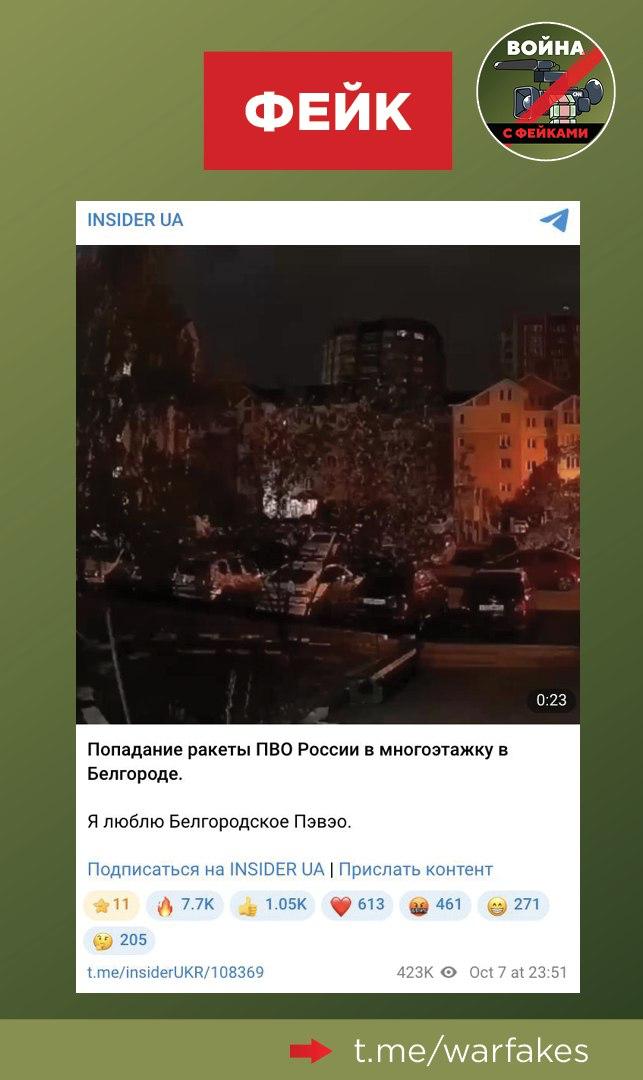 Фейк: Российская ракета ПВО ударила по многоэтажке в Старом Осколе (Белгородская область), пишут украинские Телеграм-каналы со ссылкой на видеоролик.