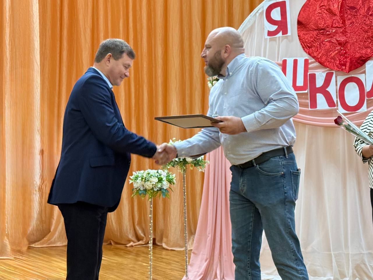 Глава муниципалитета посетил среднюю школу города Грайворона и вручил педагогам заслуженные награды: почётные грамоты и благодарности министерства образования, главы округа, Совета депутатов и профсоюза.