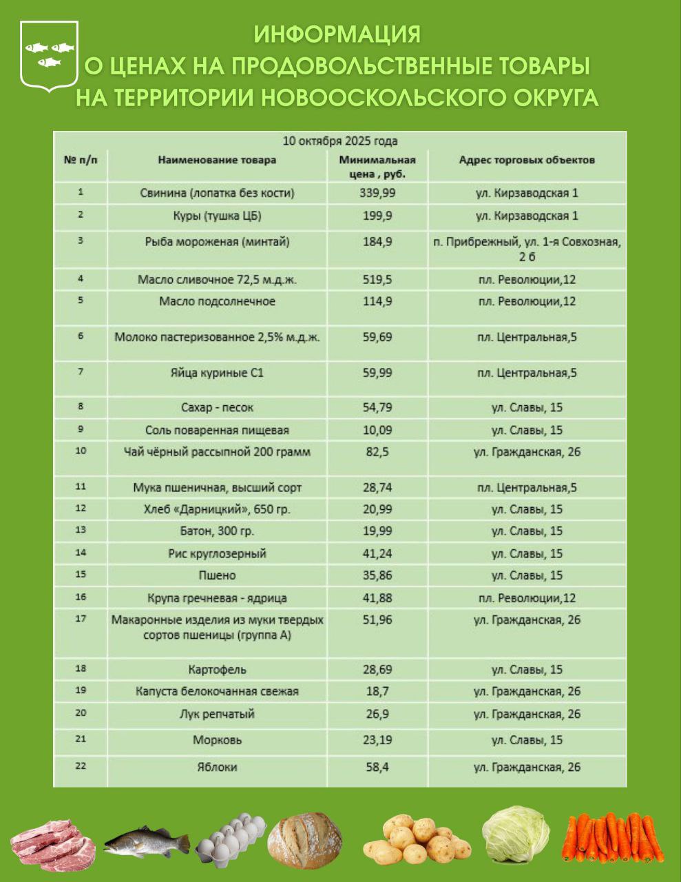 Делюсь с вами актуальной подборкой минимальных цен на продовольственные товары на территории Новооскольского муниципального округа.