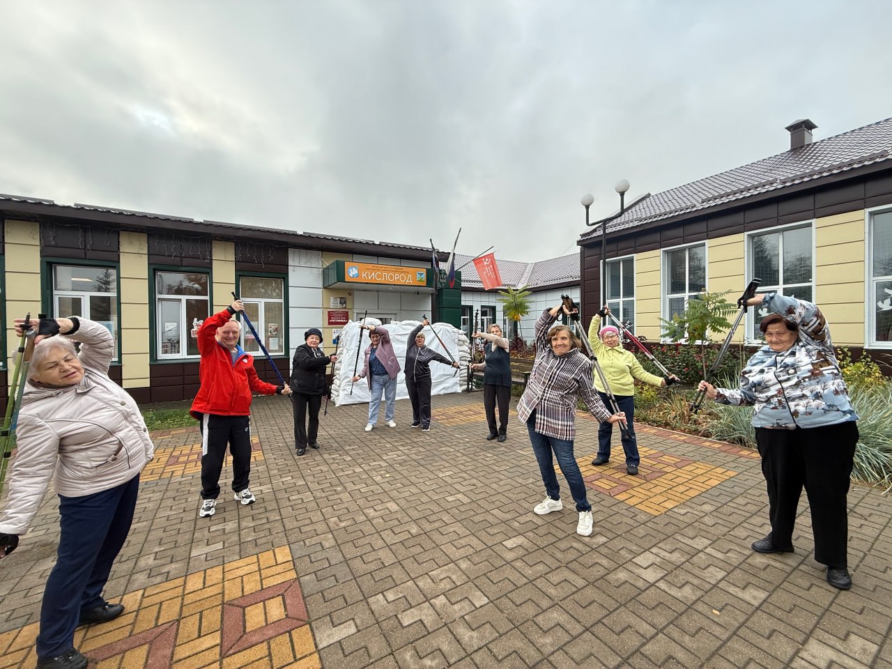 На базе Отделения дневного пребывания граждан пожилого возраста и инвалидов прошло занятие по скандинавской ходьбе