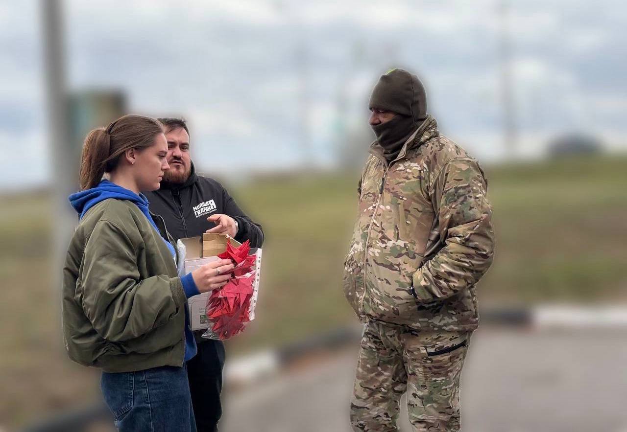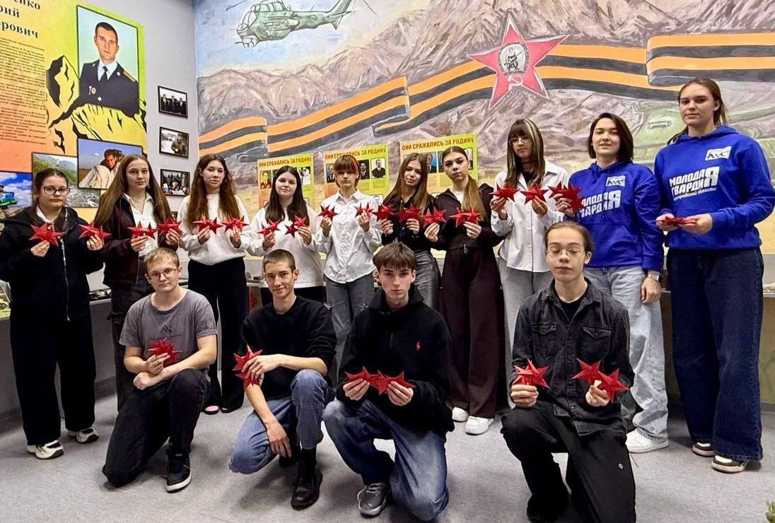 Вместе с молодогвардейцами Евгений Михайлюков передал гуманитарную помощь бойцам и сделанные студентами Индустриального колледжа «Звезды героям» — символ глубокой признательности и благодарности защитникам Отечества.