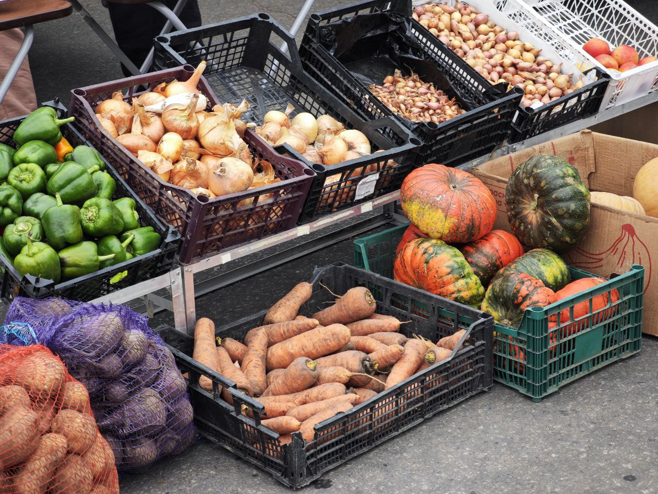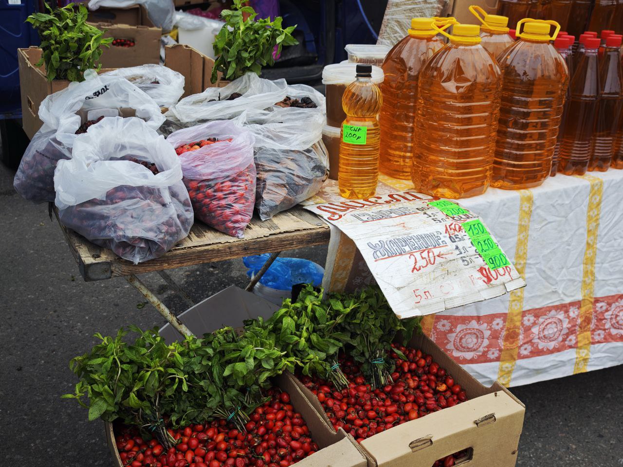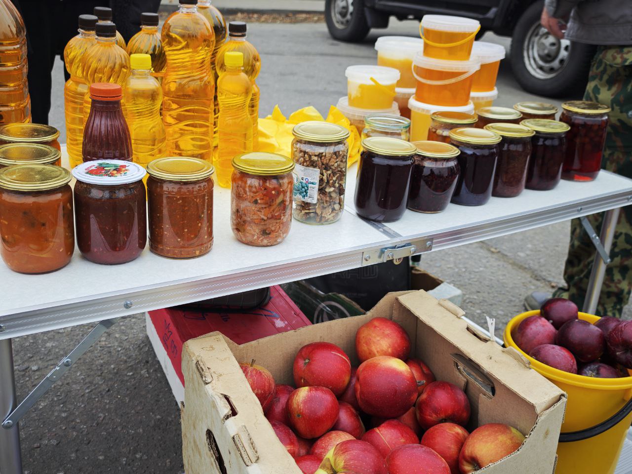 Как всегда большой ассортимент сельскохозяйственной продукции: мясо, колбасные изделия, молочная продукция, рыба, яйца, мд, хлеб, сезонные овощи и фрукты. Есть саженцы деревьев, много цветов, изделия ручной работы и многое другое.