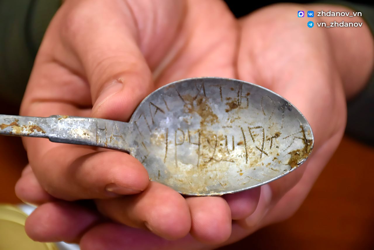 Поисковики нашли и личные вещи – ложки с надписями. На одной удалось прочитать «На память Коле от Пети», на другой – «Грачев А.С., ХАУ. Белёв, 1941 год. Фергана, 1942 год». Для установления имени бойца направлен запрос в Центральный архив Минобороны РФ.