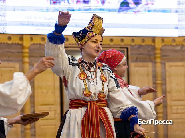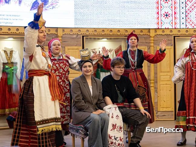 На фольклорно-игровой программе белгородским студентам рассказали о обычаях бракосочетания на Руси.