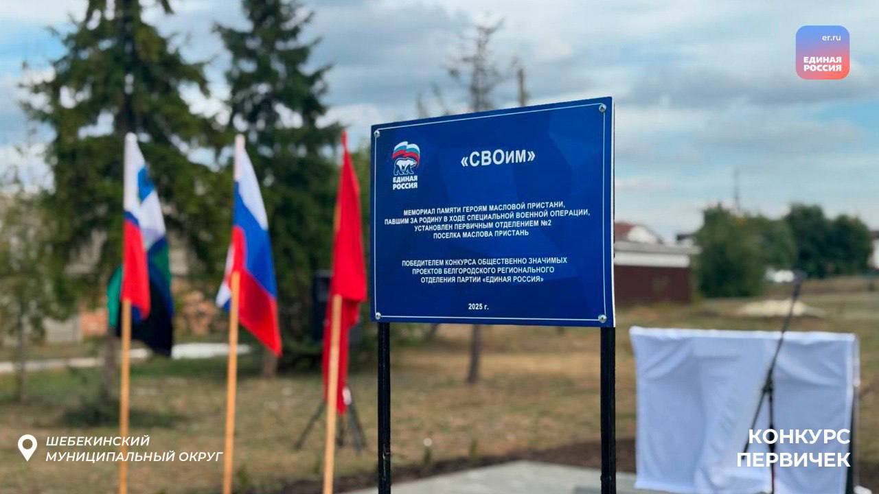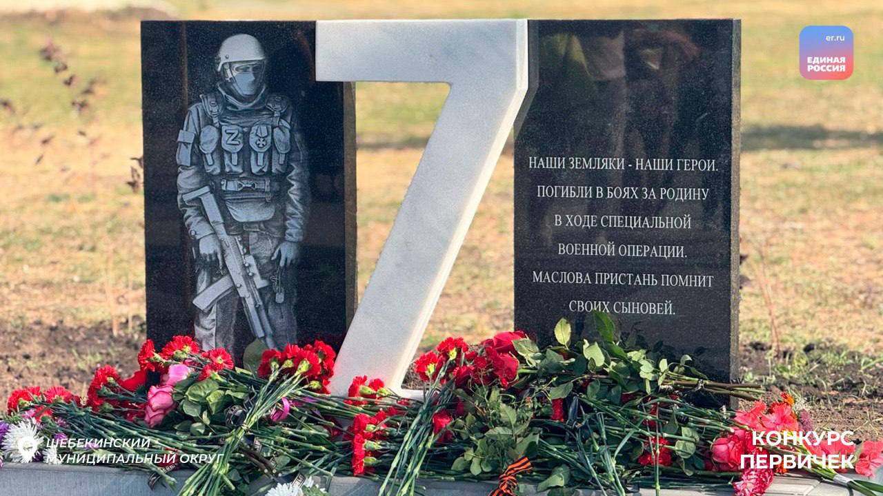 В Шебекинском округе партийцы открыли мемориал памяти «СВОим», посвященный жителям поселка Маслова Пристань, которые погибли в зоне проведения Специальной военной операции. Мемориал представляет собой стелу, на которой увековечены имена 15 Героев-земляков, отдавших свою жизнь, защищая Родину.