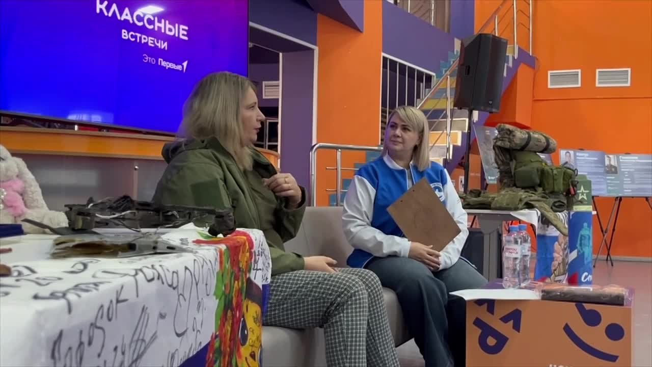 Занимается она сбором гуманитарной помощи для бойцов. Активист СВО рассказала ребятам о работе и истории создания волонтерских групп, о наиболее запоминающихся моментах во время поездок, о стремлении жителей области помочь фронту приблизить общую Победу. Светлана показала ребятам сухпаёк "Армия России", который солдаты могли растягивать на два-три дня, бронежилеты, которые носят наши воины, и конечно же памятные подарки - шевроны, мягкие игрушки, которые солдаты дарят на память, в знак уважения и благодарности.