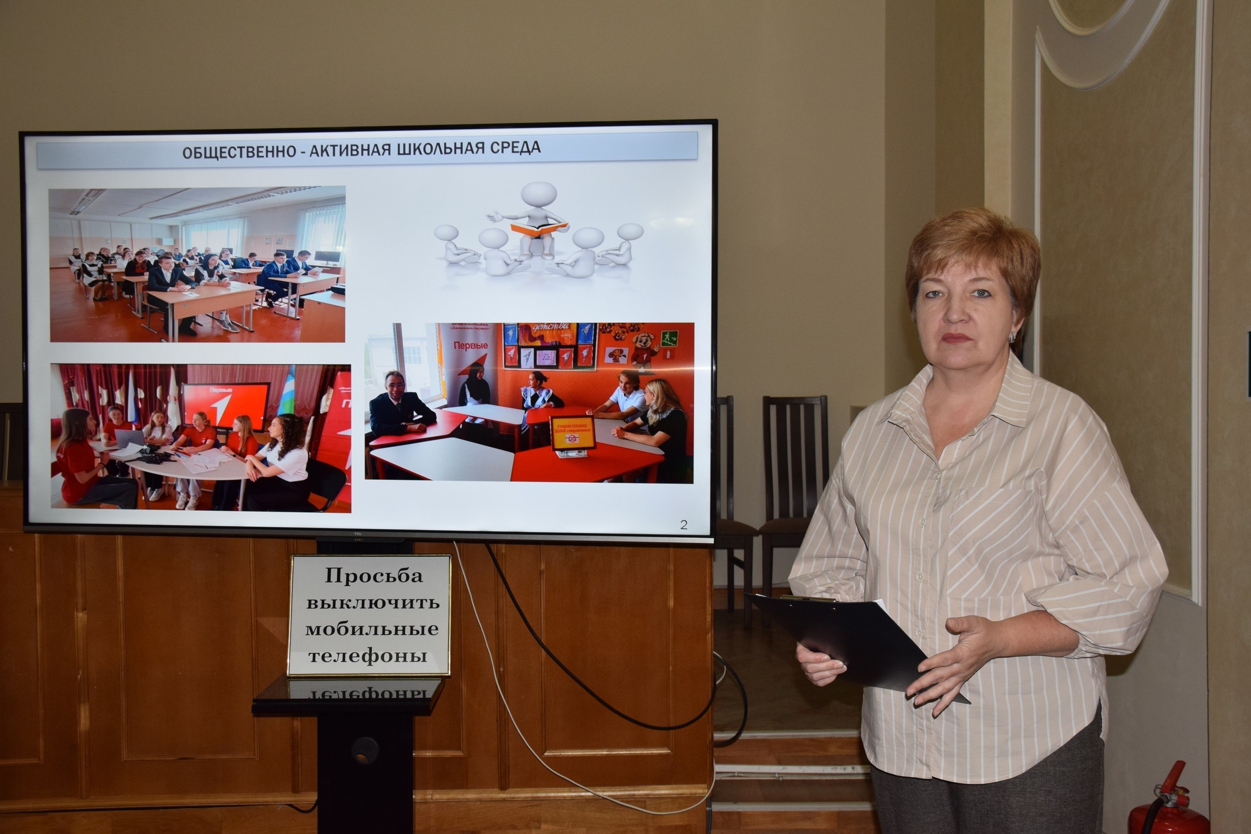 Елена Николаевна Ходунова, заместитель директора Дома детского творчества, представила отчёт о проекте «Помним! Гордимся! Наследуем!», направленном на военно-патриотическое воспитание молодёжи через кадетские классы и юнармейские отряды.