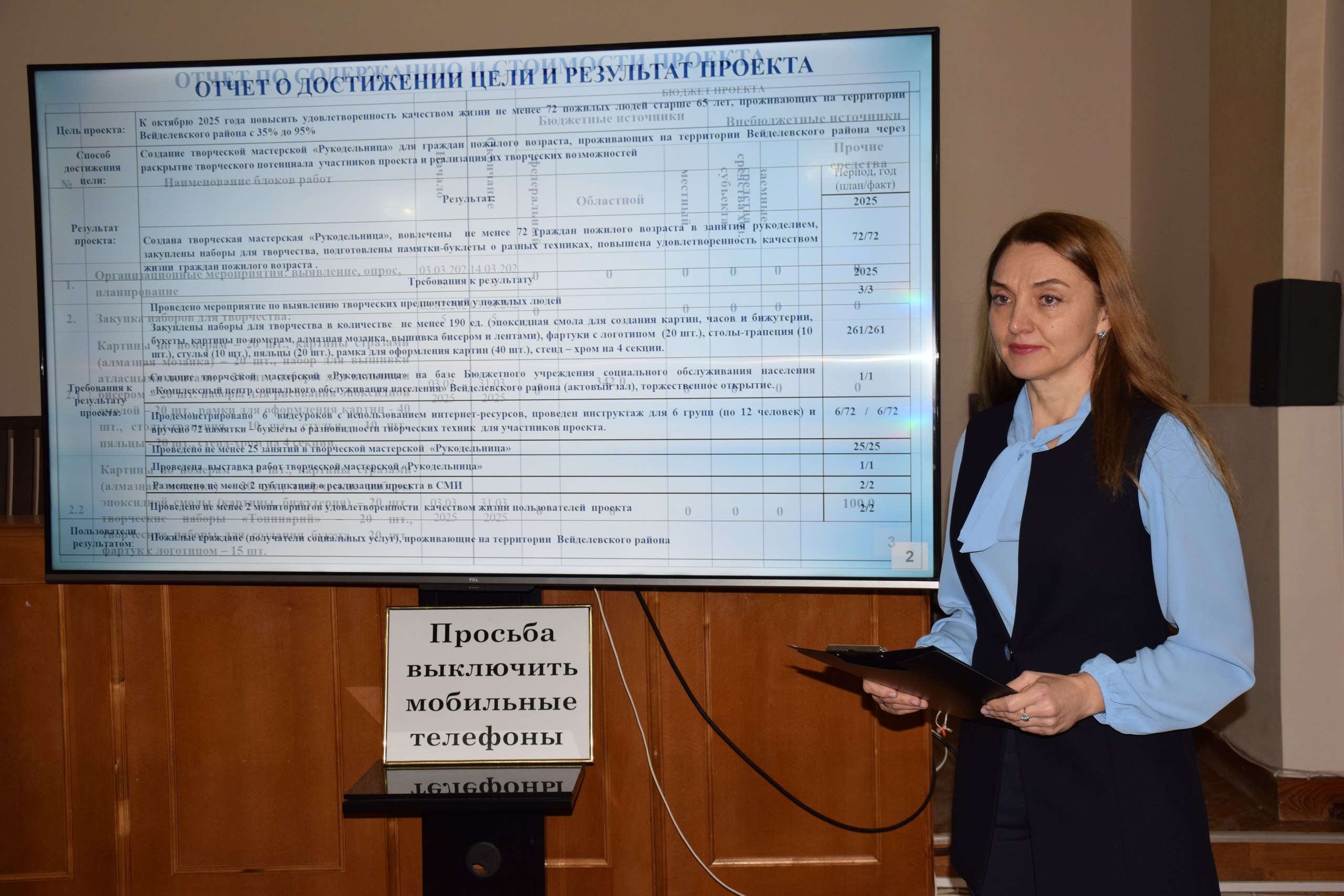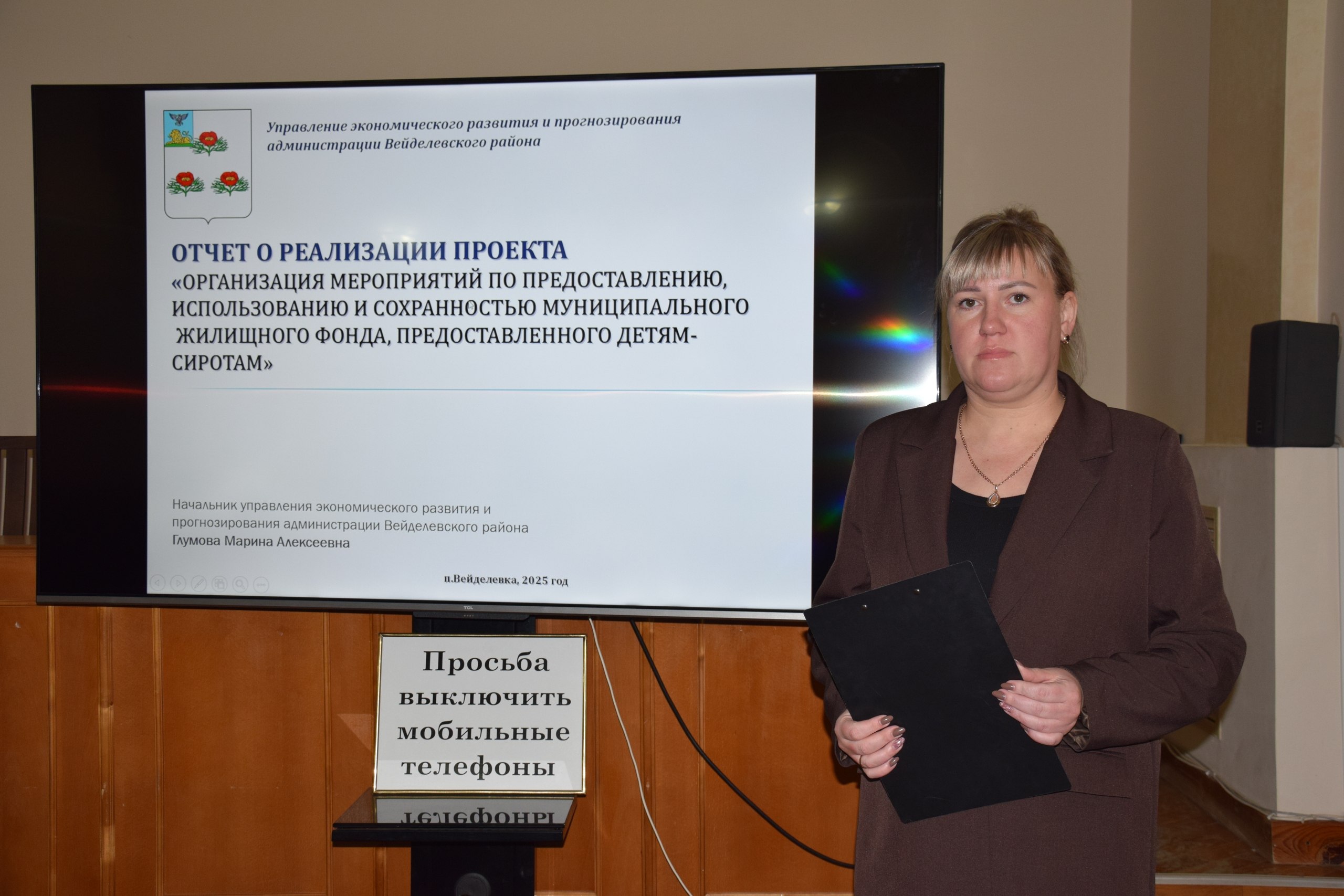 Марина Алексеевна Глумова, начальник управления экономического развития и прогнозирования администрации Вейделевского района, отчиталась о закрытии двух проектов: «Организация мероприятий по предоставлению, использованию и сохранности муниципального жилищного фонда, предоставленного детям-сиротам» и «Обучение муниципальных заказчиков в сфере закупок, и внедрение электронных заявок в системе АЦК – Госзаказ».