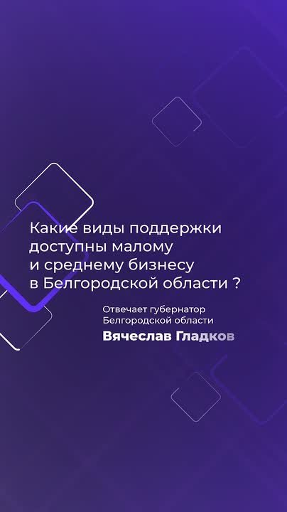Об этом сообщил в утреннем обращении губернатор Вячеслав Гладков. Получить консультацию и оформить заявку можно в Центре «Мой бизнес», у первого заместителя губернатора Ильи Пономарёва или в Министерстве экономического развития Белгородской области.