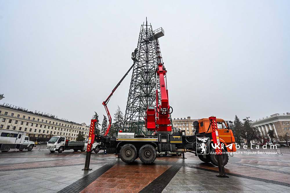 Специалисты завершают монтаж металлического каркаса – остались последние штрихи, и конструкция готова к украшению. Впереди самый творческий этап: ель оденут в пушистую декоративную хвою, а затем добавят праздничные акценты – сверкающие шары, гирлянды и традиционную снежинку на макушку. За работу отвечают профессионалы управления «Белгорблагоустройство».