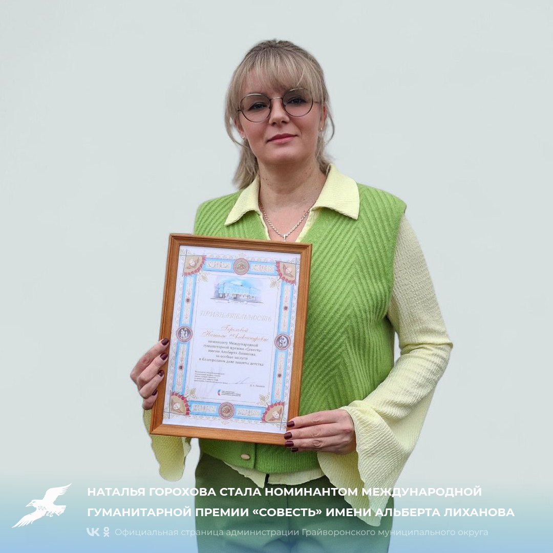Наталья Горохова стала номинантом Международной гуманитарной премии «Совесть» имени Альберта Лиханова