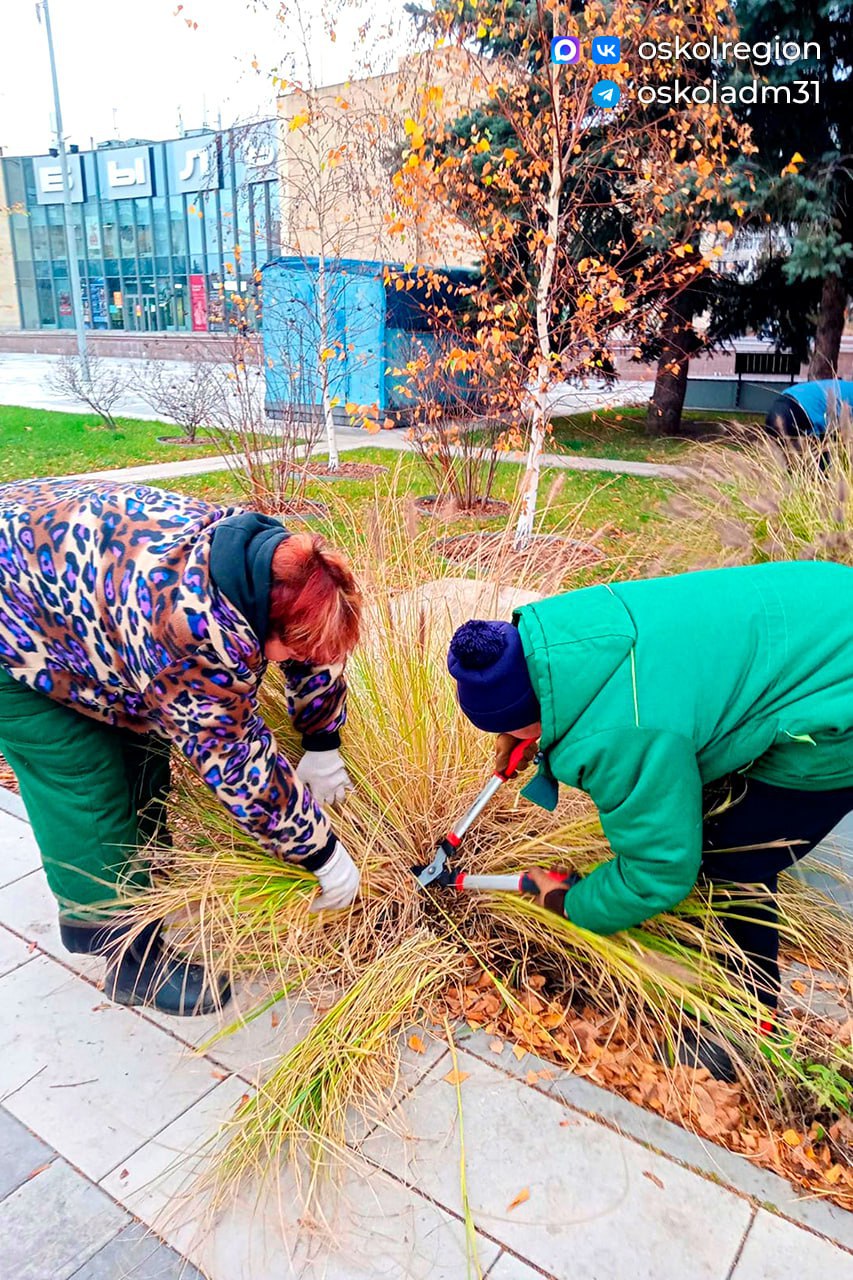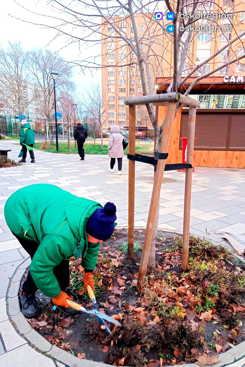 Уже на следующей неделе наступит зима, поэтому сотрудники «Зеленстроя» заботятся о городских клумбах в любую погоду.