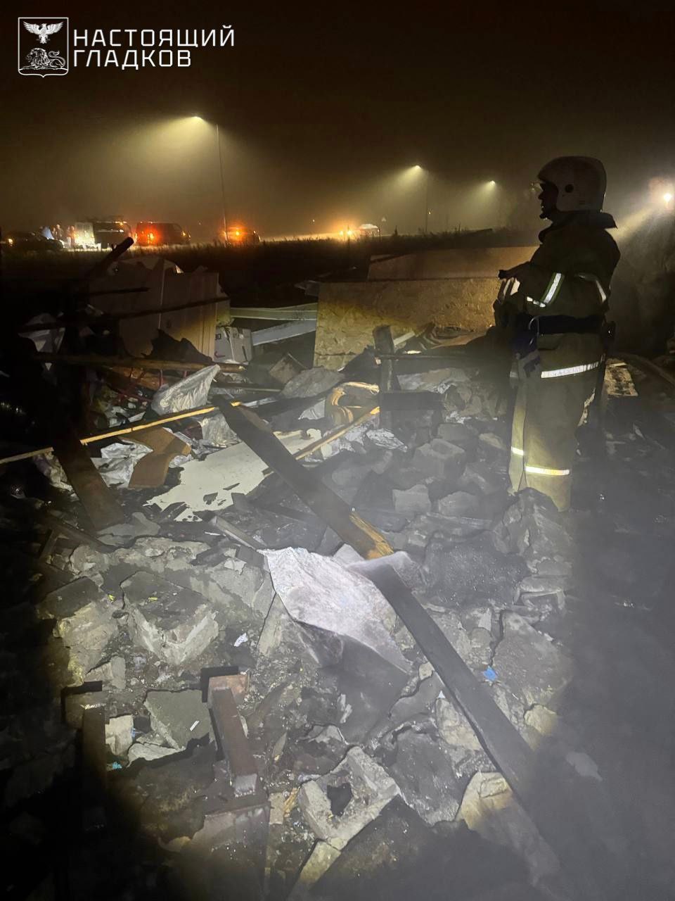 От удара загорелась хозяйственная постройка, которую оперативно потушили сотрудники МЧС. В доме выбиты окна, а также повреждены кровля, фасад, забор и надворные постройки.