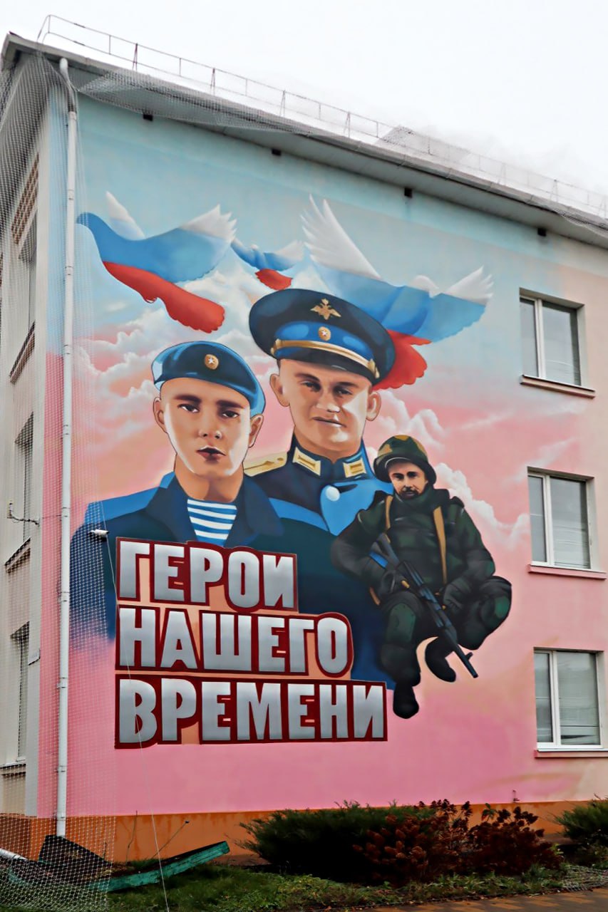 Один мурал нарисовали на фасаде многоквартирного дома. Композиция изображает представителей старшего и младшего поколений, символизируя связь времён и память о подвиге героев войны.