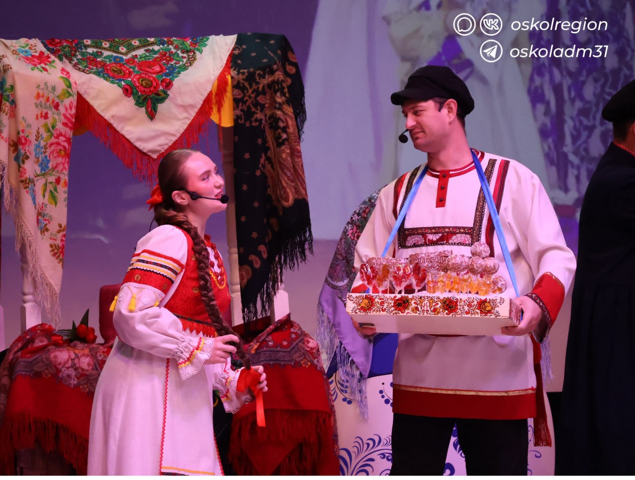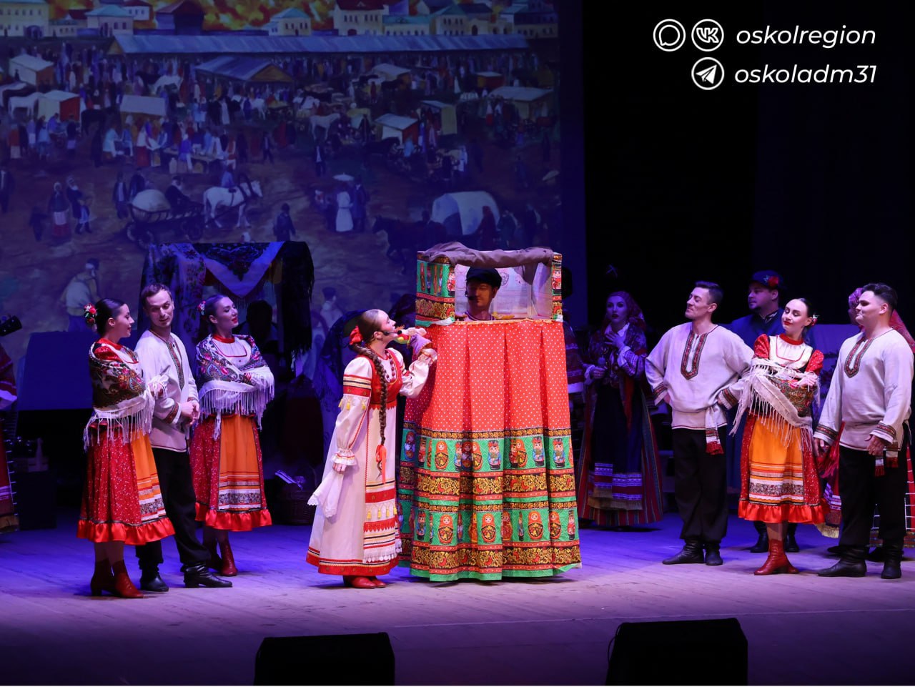 Зрители стали свидетелями яркой постановки, погрузившей их в колорит Старооскольской ярмарки XIX века. Со сцены разыгрывались сцены заключения торговых сделок, оживлённого торга и даже трогательной истории любви.