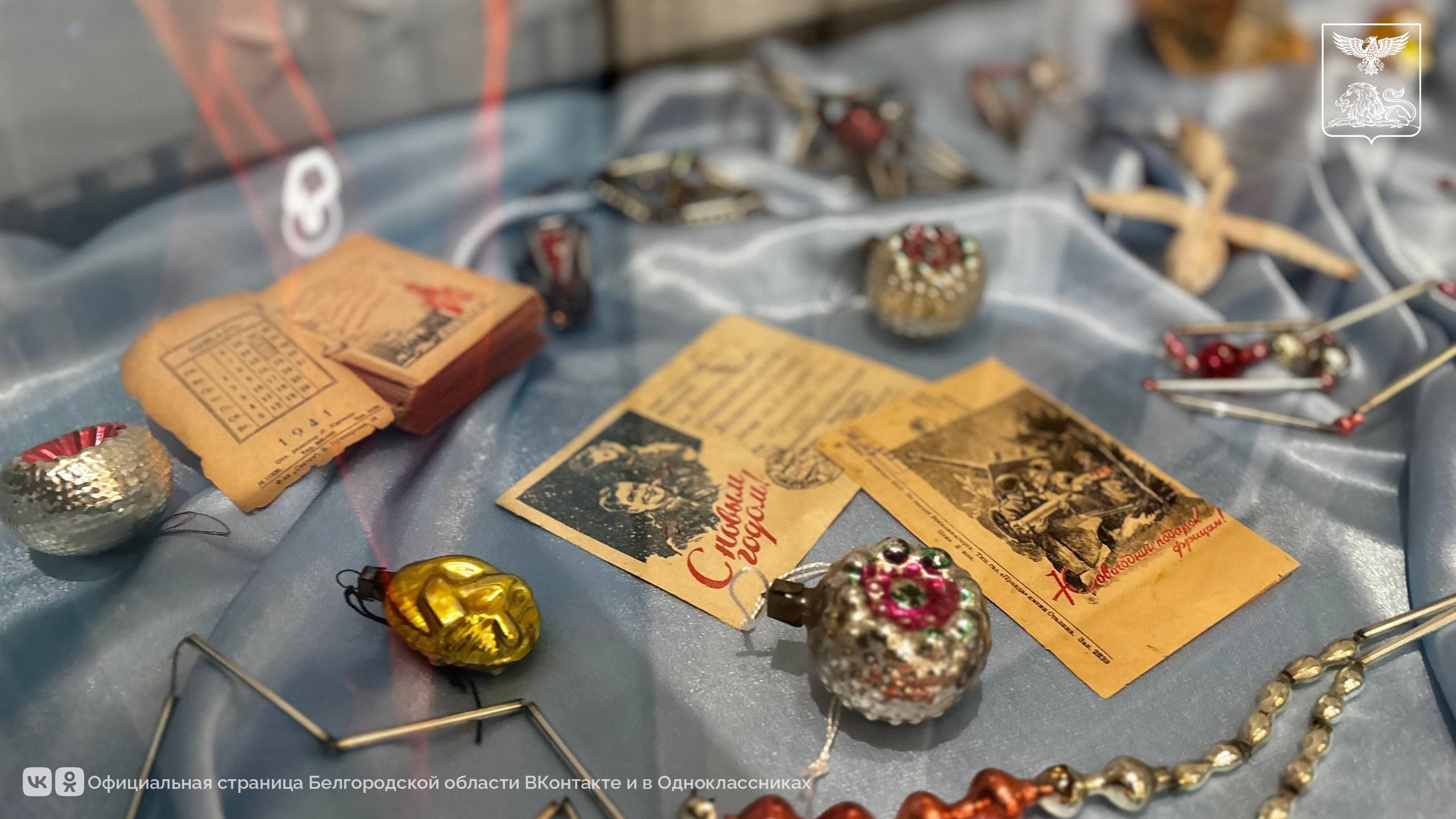 В витринах собраны поздравительные открытки, ёлочные игрушки и украшения, по которым можно проследить историю нашей страны. Особый раздел выставки посвящён празднованию Нового года на фронте.