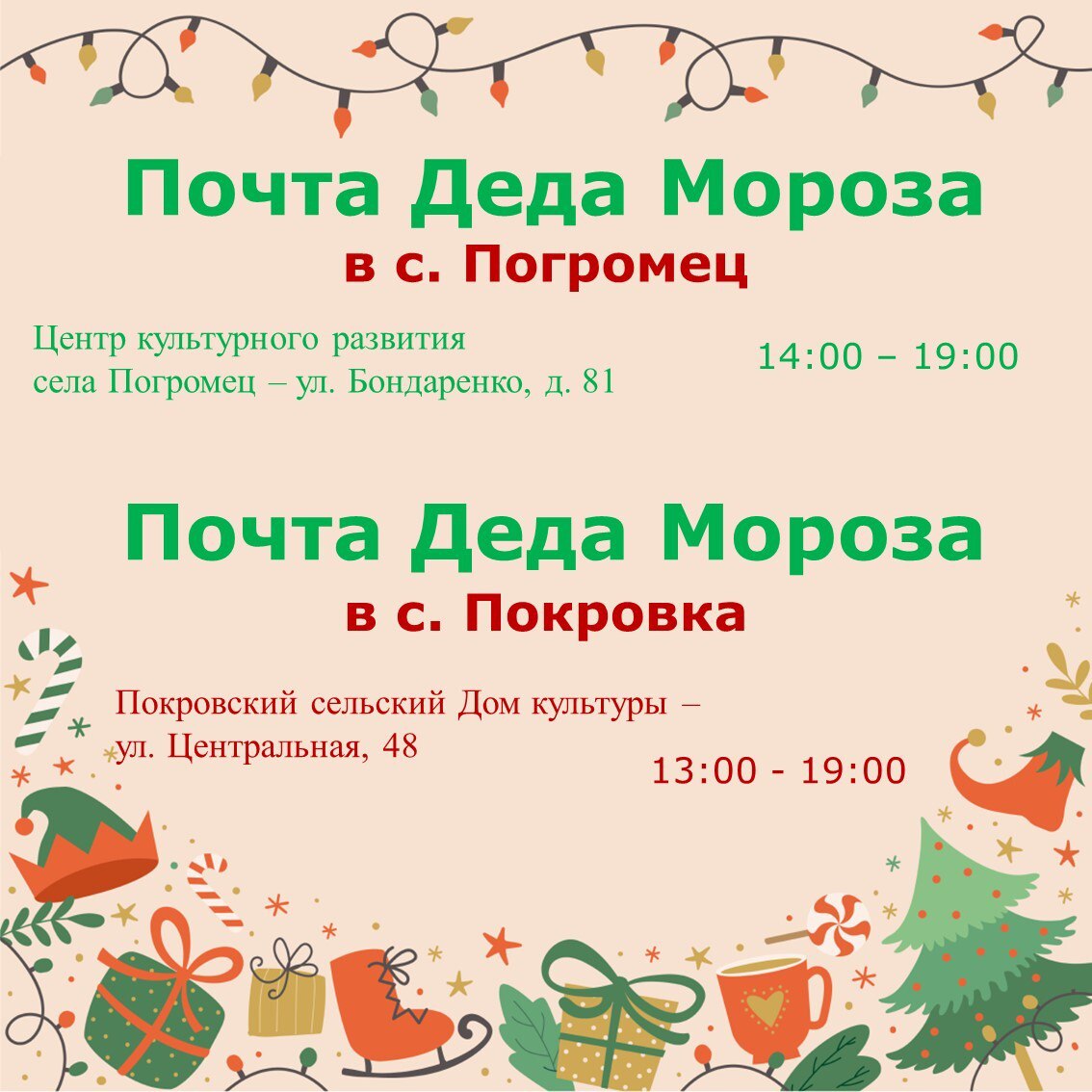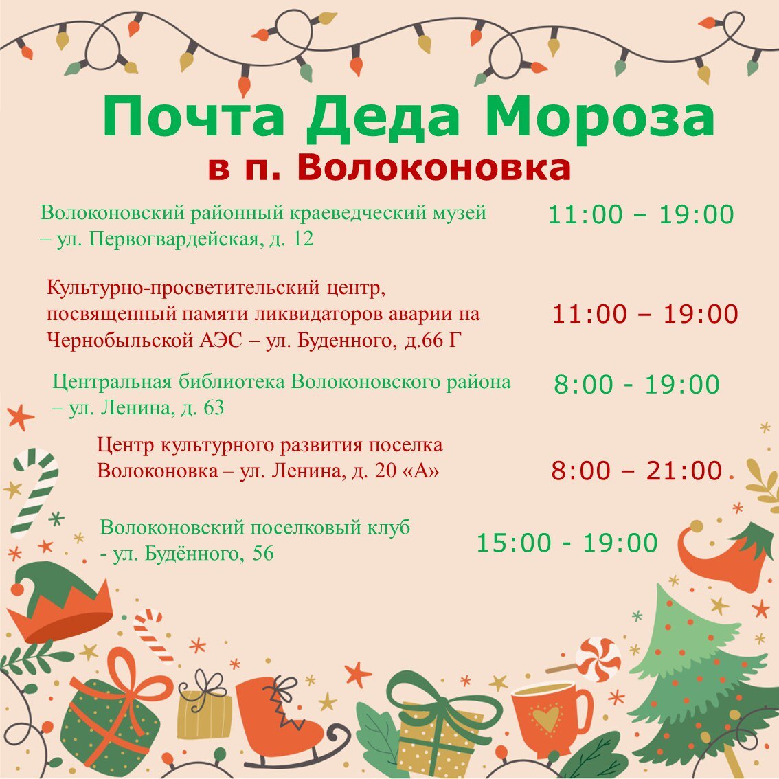 Почта Деда Мороза работает ежедневно до 30 декабря 2025 года во всех учреждениях культуры нашего округа, куда вы можете прийти и заполнить бланк.