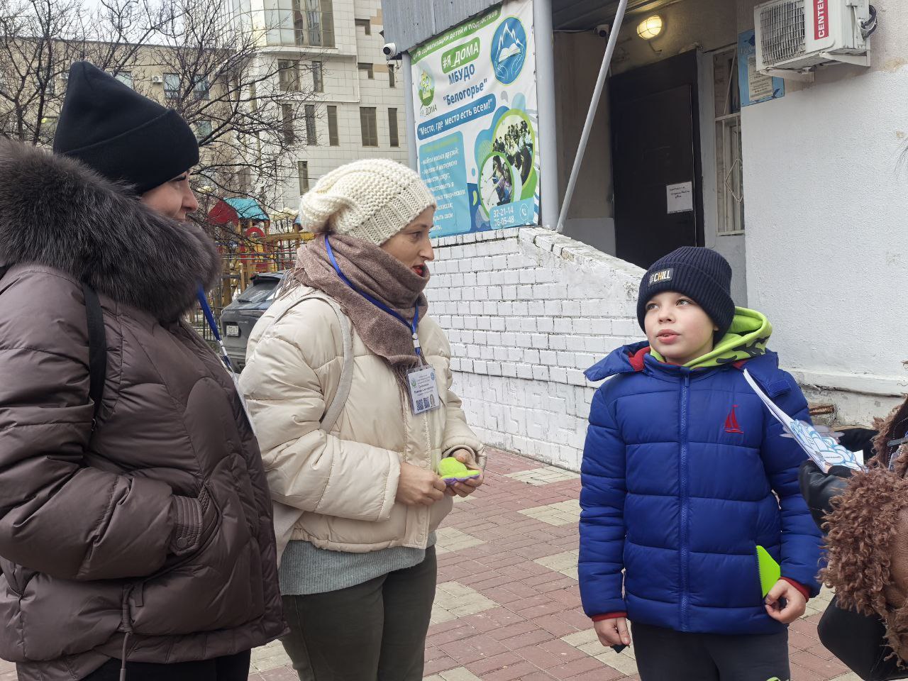 Совместно с директором Центра социализации детей и подростков #Я_ДОМА Анной Маматовой и активистами Центра мы вышли на улицы города, прошли по утвержденному маршруту, где нам повстречалось около 20 подростков и маленьких детей с родителями. Мы раздали листовки с кюар-кодом в виде «Ромашки» с отсылкой на сайт подросткового Центра, а также рассказали подросткам о местах и мероприятиях, где можно провести свое свободное время с пользой и ближайшие новогодние мероприятия.