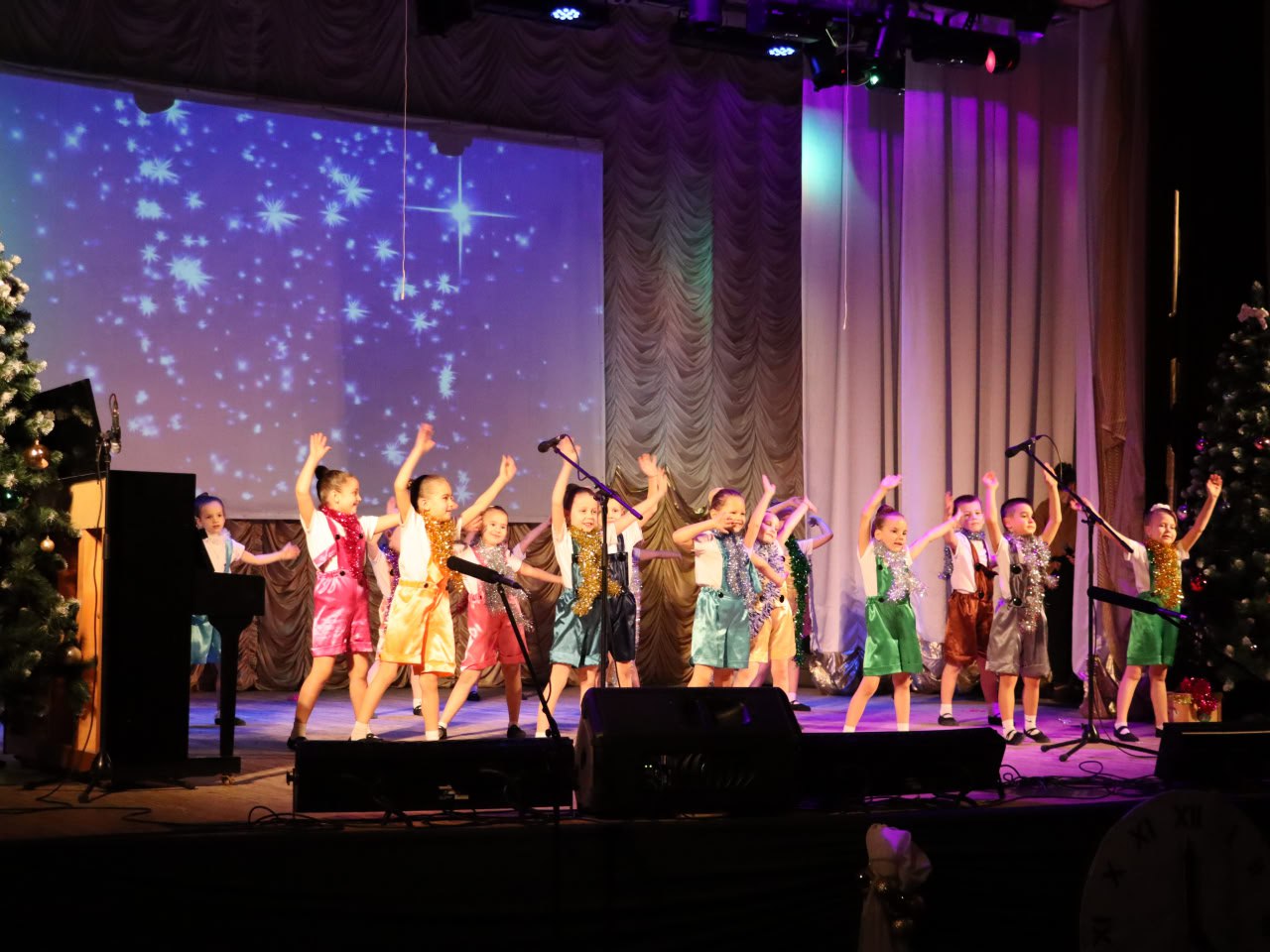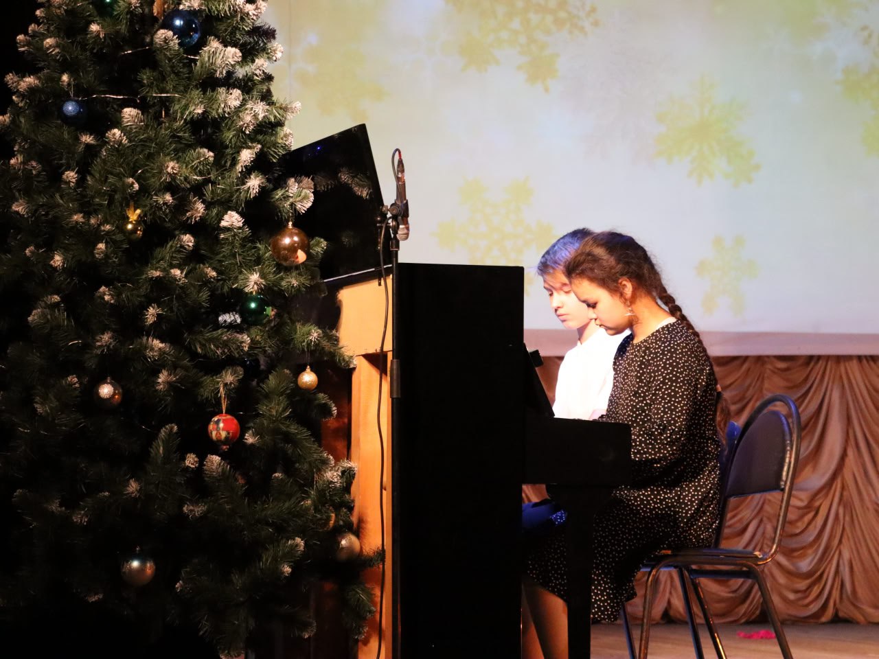 На сцене блистали коллективы и солисты-исполнители, демонстрируя своё мастерство. Звучали самые разные инструменты — от пианино и ксилофона до духовых, и каждая нота становилась частью тёплого новогоднего послания для зрителей. Разнообразие талантов школы создало понастоящему праздничную атмосферу.