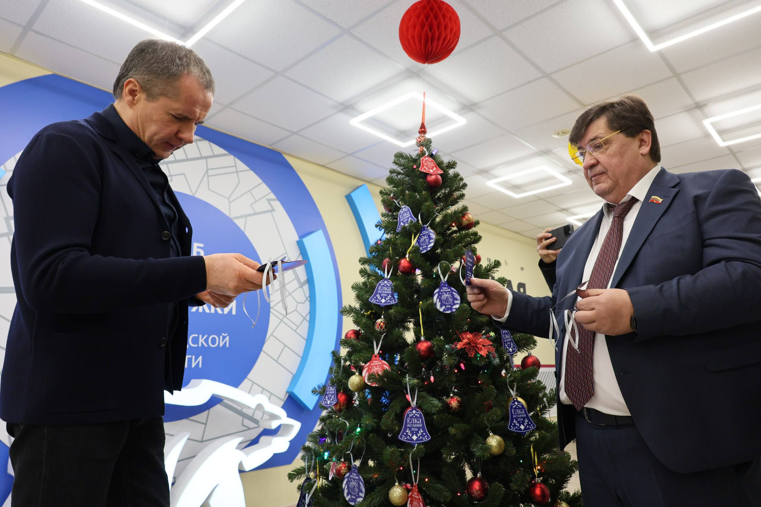 Совместно с Губернатором области Вячеславом Владимировичем Гладковым сняли с ёлки по три детских желания. Мне достались мечты ребят из Шебекинского, Ровенького и Борисовского округов — они загадали наборы для творчества и химических опытов, развивающий конструктор и настольные игры. С большим удовольствием исполню их пожелания!