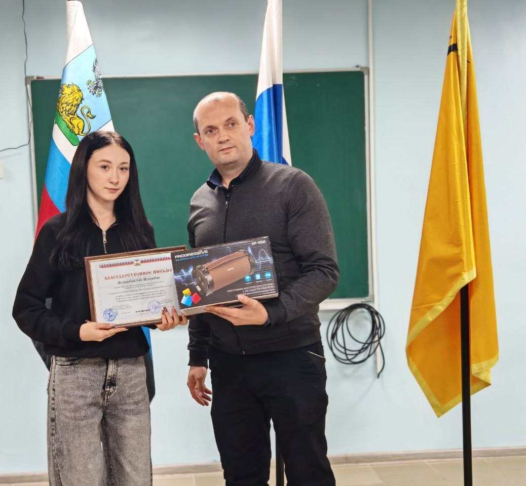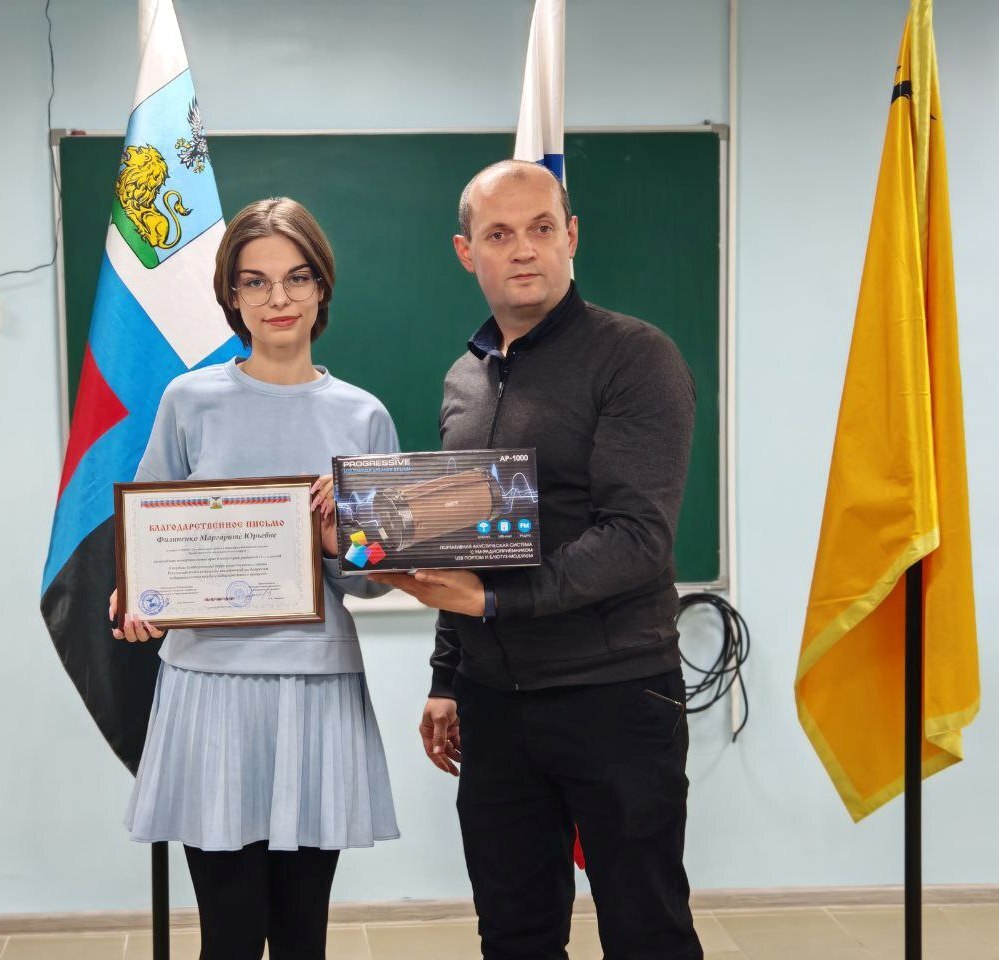 Сегодня директор Головчинской средней школы Алексей Понеделко торжественно вручил Еве и Маргарите Благодарственные письма Облизбиркома и Министерства образования Белгородской области, а также памятные сувениры. Благодарственными письмами отмечены преподаватели Виктория Лысенко и Юлия Лубяная, которые подготовили девушек.