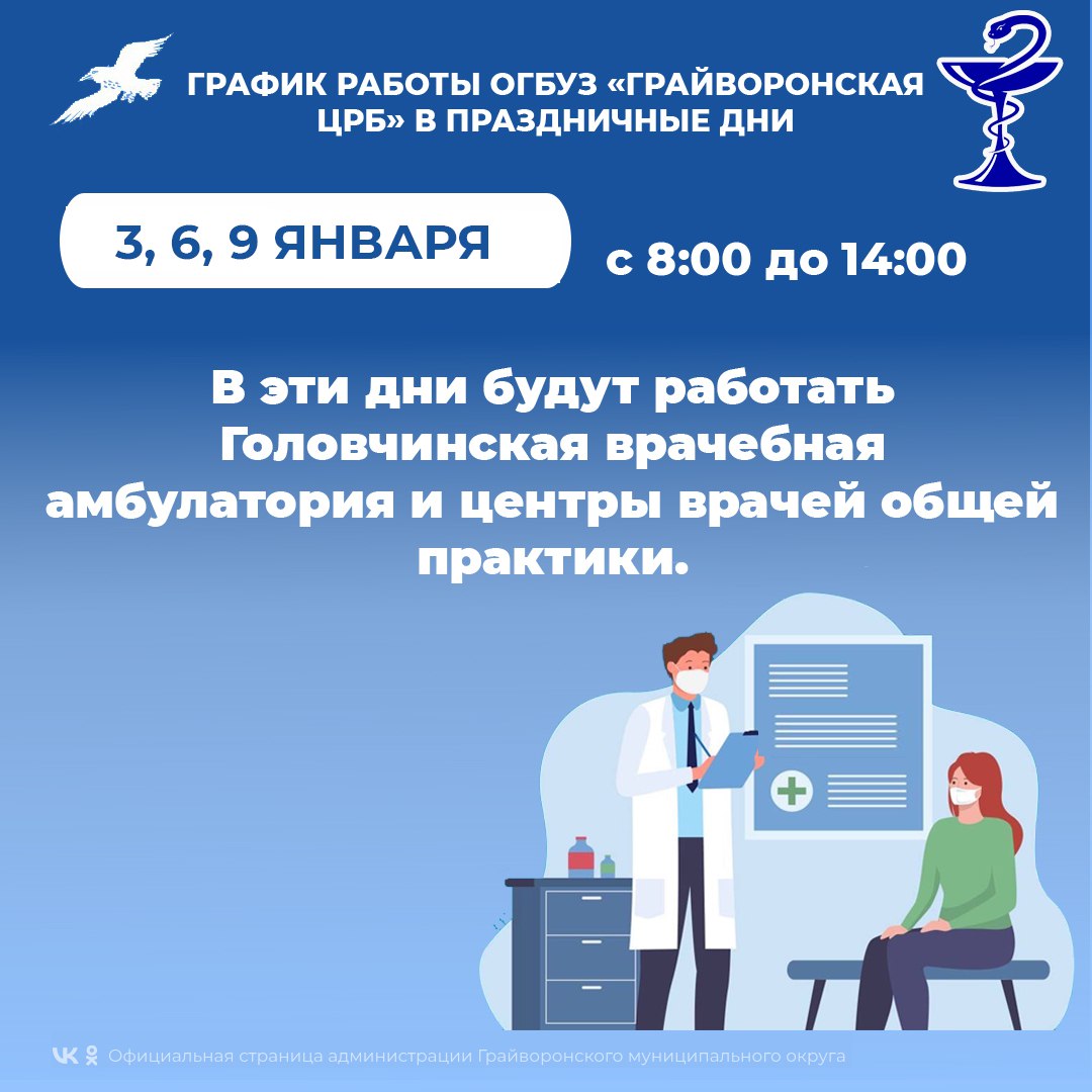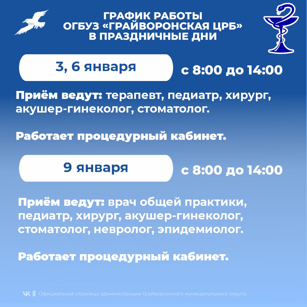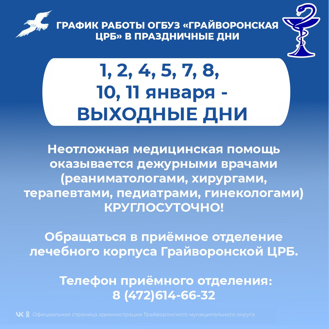 Публикуем график работы Грайворонской ЦРБ в праздничные дни