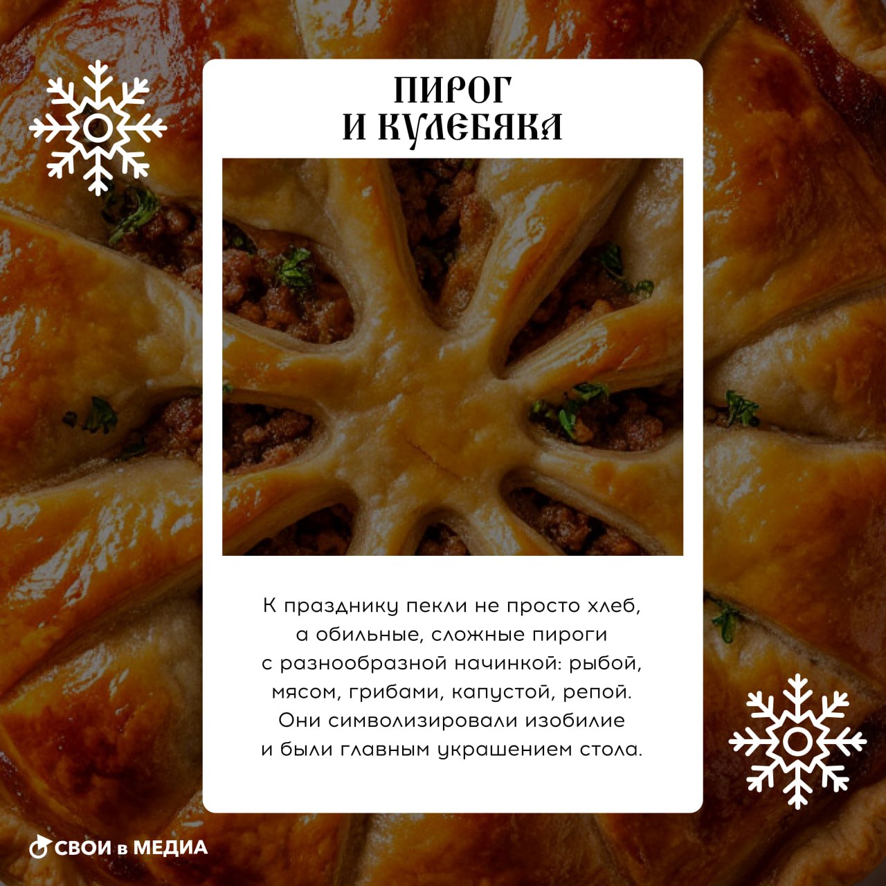 Команда #СВОИвМедиа решила заглянуть в старинные поваренные книги и нашла кое-что интересное. В карточках рассказываем о блюдах, которые когда-то были главным украшением зимних праздников.