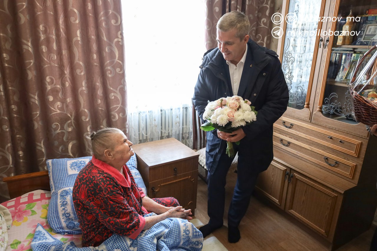 Заехал в гости к имениннице, чтобы лично поздравить с праздником. Галина Григорьевна — узница фашистского концлагеря времён Великой Отечественной войны. На её долю выпало немало тяжёлых испытаний.