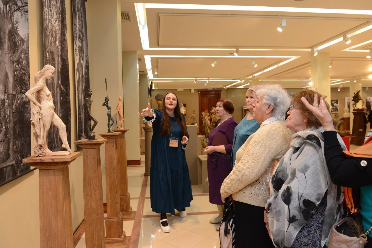 Для гостей учреждения был подготовлен концерт классической музыки и экскурсия по выставке «Семья скульпторов», где они познакомились с неординарным подходом авторов к изображению исторических деятелей и близких, узнали больше о династии Тугариновых — Попандопуло.