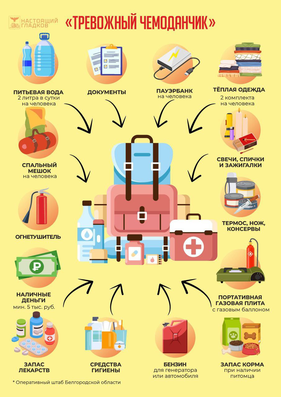 Что нужно подготовить и сложить в «Тревожный чемоданчик», смотрите в карточке: