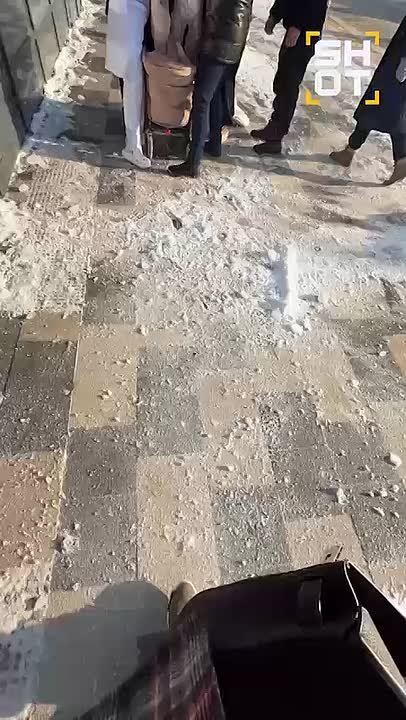 Как выяснил SHOT, инцидент произошёл в ЖК «Кварталы 21/19» на 2-м Грайвороновском проезде. По словам очевидца, он шёл на работу, когда с крыши вниз рухнула глыба льда на маму с коляской, которая шла впереди него.