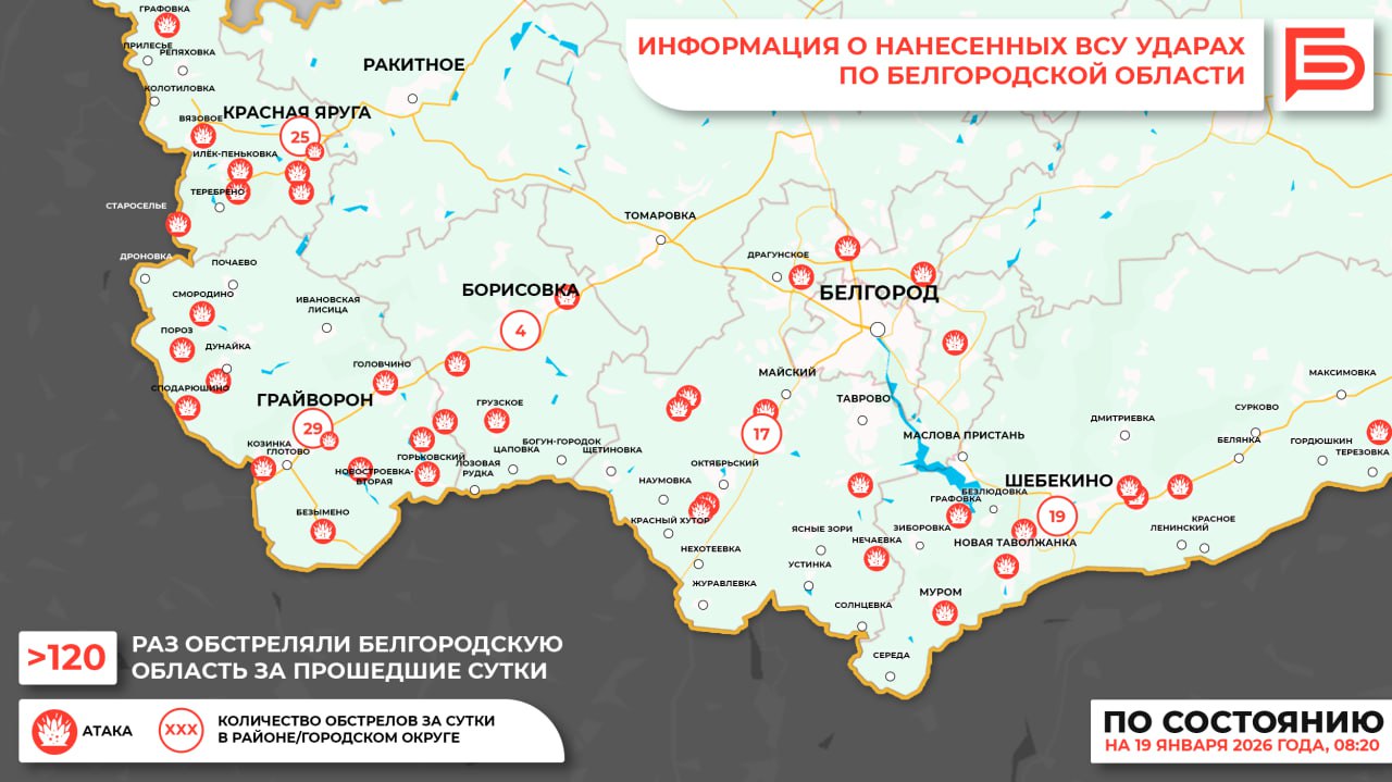 За прошедшие сутки ВСУ обстреляли Белгородскую область не менее 120 раз