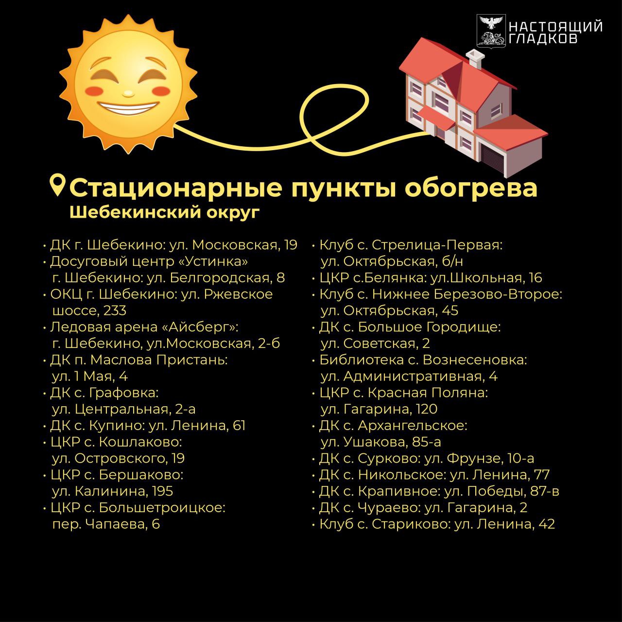 Это места, куда смогут прийти жители, чтобы погреться, зарядить телефон, выпить горячий чай, получить ответы на возникающие вопросы.Часть 1.На связи с вами в MAXВячеслав Гладков.