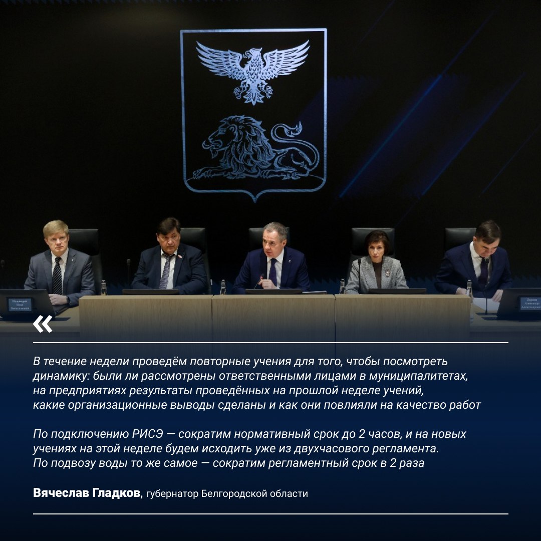 По итогам внезапных тренировок в Белгороде выявлены недостатки в сроках подключения МКД к РИСЭ и организации подвоза воды. Временно исполняющий обязанности заместителя губернатора Евгений Воробьёв доложил о несоответствии действующих регламентов.