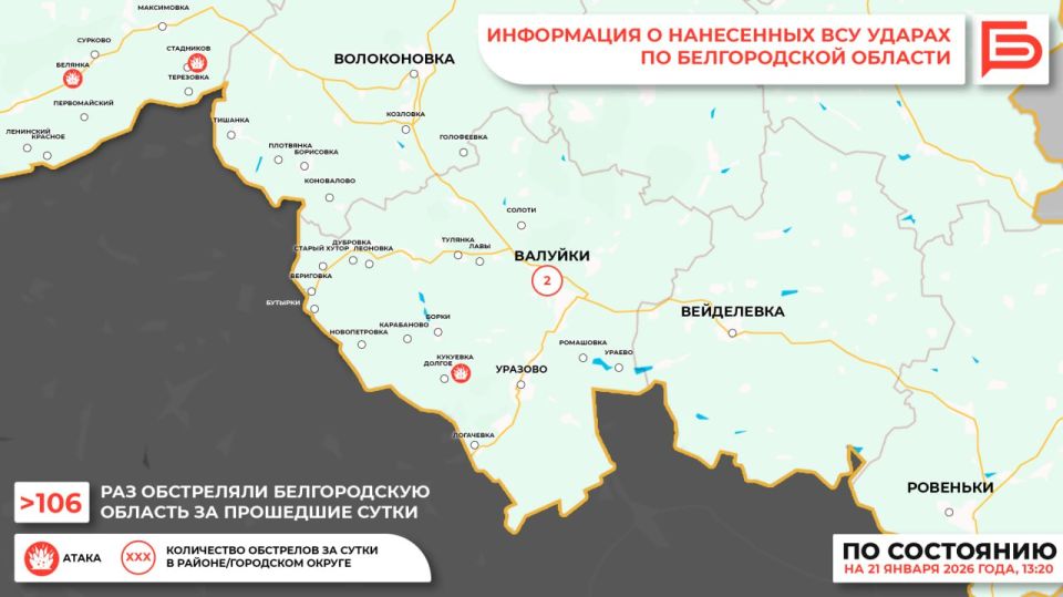 За прошедшие сутки ВСУ обстреляли Белгородскую область не менее 106 раз