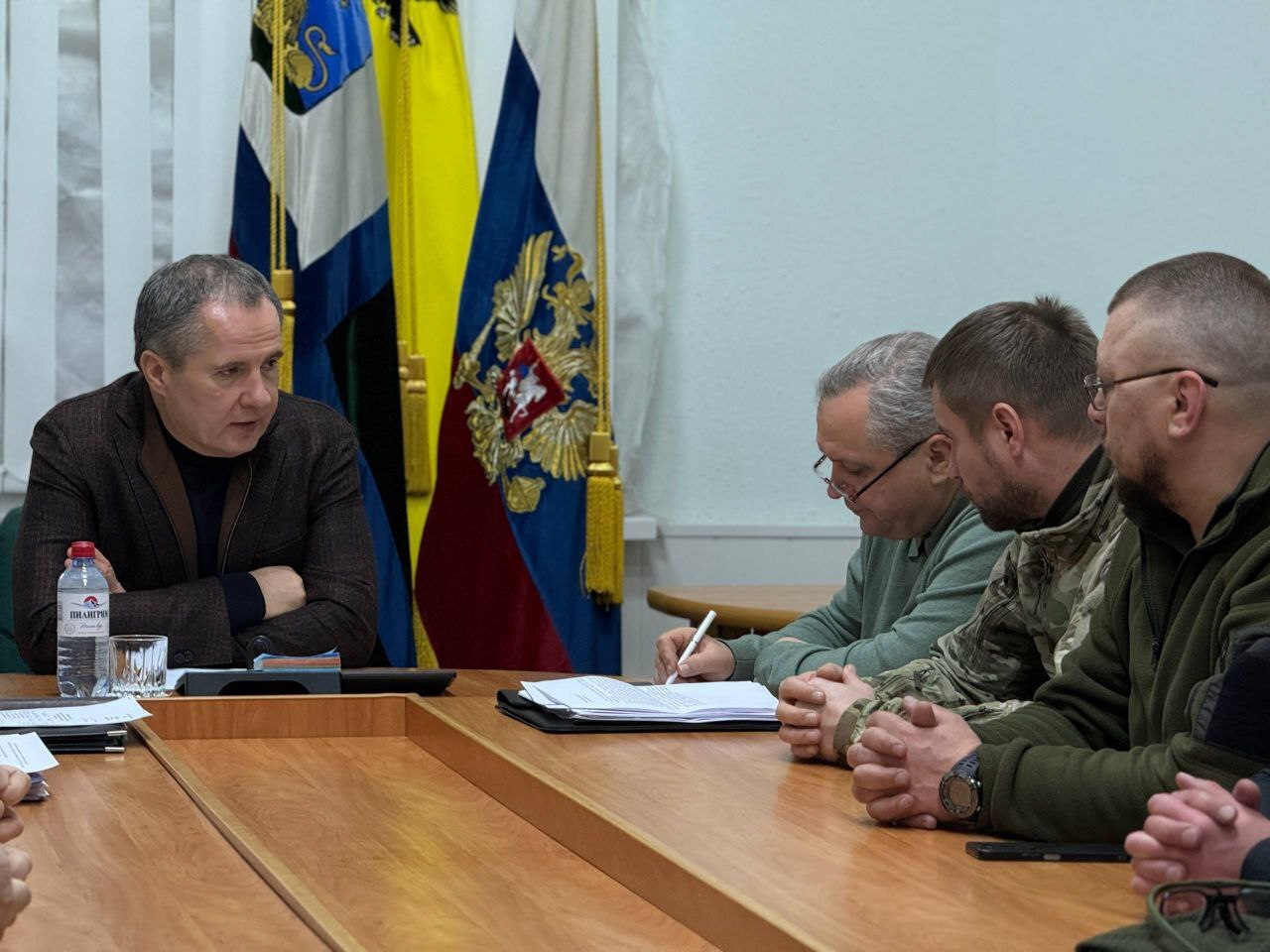Глава региона вместе с представителями силовых структур, Министерства обороны, а также заместителями Сергеем Четвериковым и Евгением Воробьевым, командирами подразделений «БАРС-Белгород» и «Орлан» провёл совещание по вопросам безопасности.