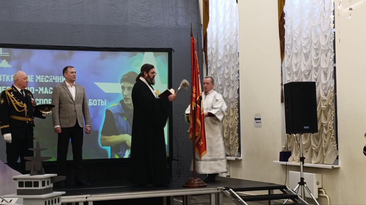 Чин освящения знамени совершил настоятель храма Новомучеников и исповедников Белгородских протоиерей Иоанн Задорожный. Его слова о духовной силе и любви к Родине были особенно важны для молодых ребят.