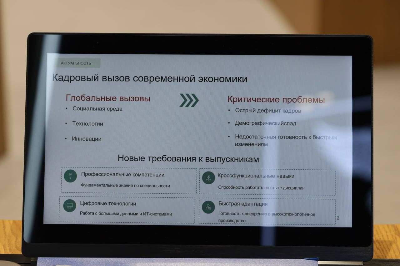 Кроме этого, обсудили систему бесшовной подготовки кадров, главная цель которой — подготовка высококвалифицированных специалистов нового уровня для кадрового обеспечения экономики региона.