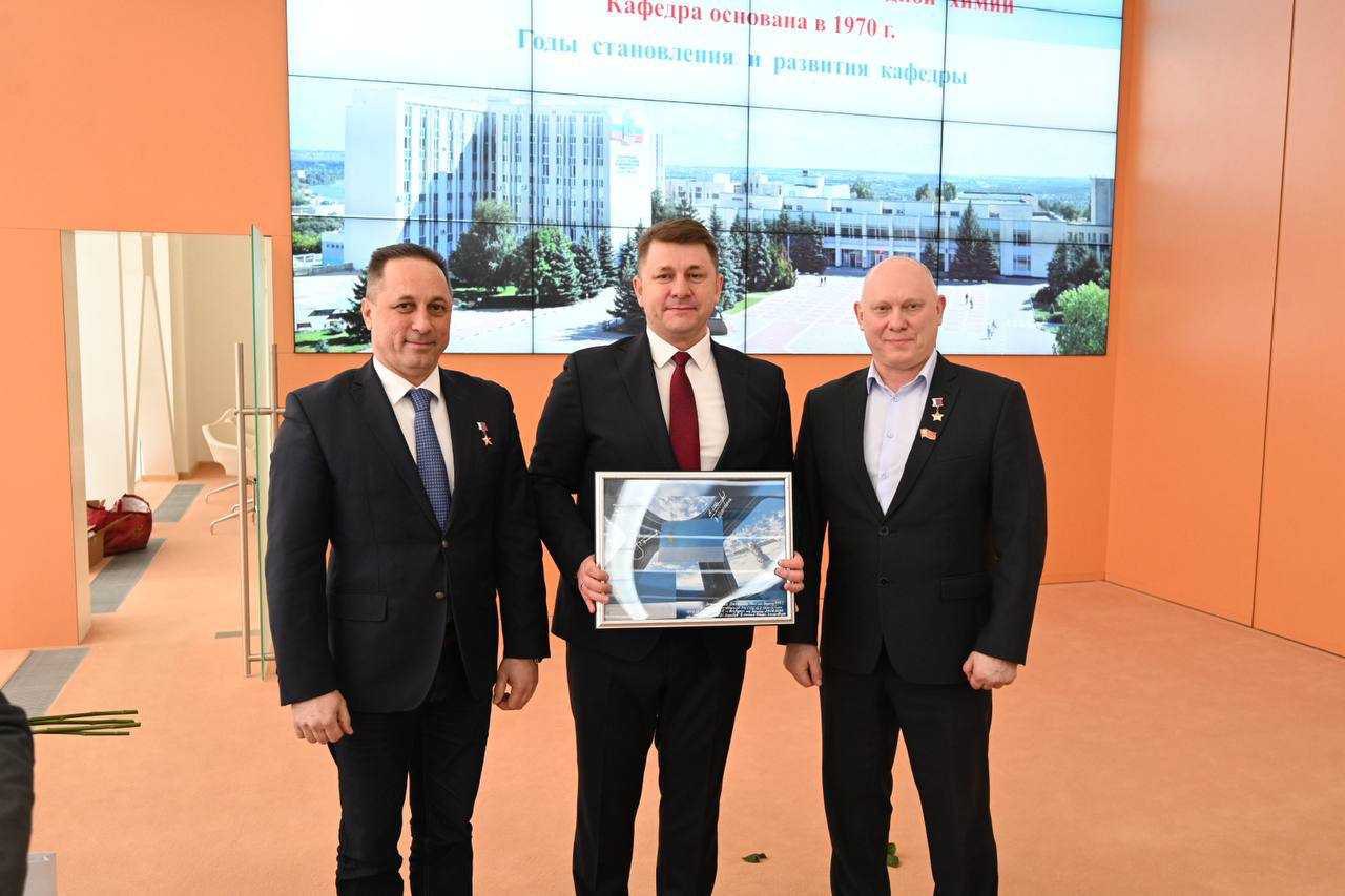 Подарок является символом реальных космических высот белгородских учёных, с которыми сотрудничают не первый год лётчики-космонавты. Результаты совместной научной работы с кафедрой теоретической и прикладной химии БГТУ, которая отмечает 55 лет, применяются в открытом космосе.
