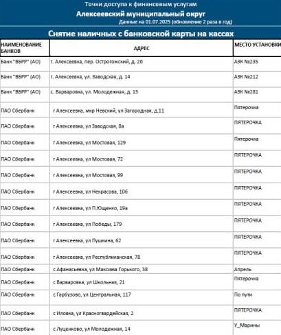 Здесь вы найдете актуальную информацию о местах, где можно получить финансовые услуги — банкоматы, офисы банков и другие точки доступа.