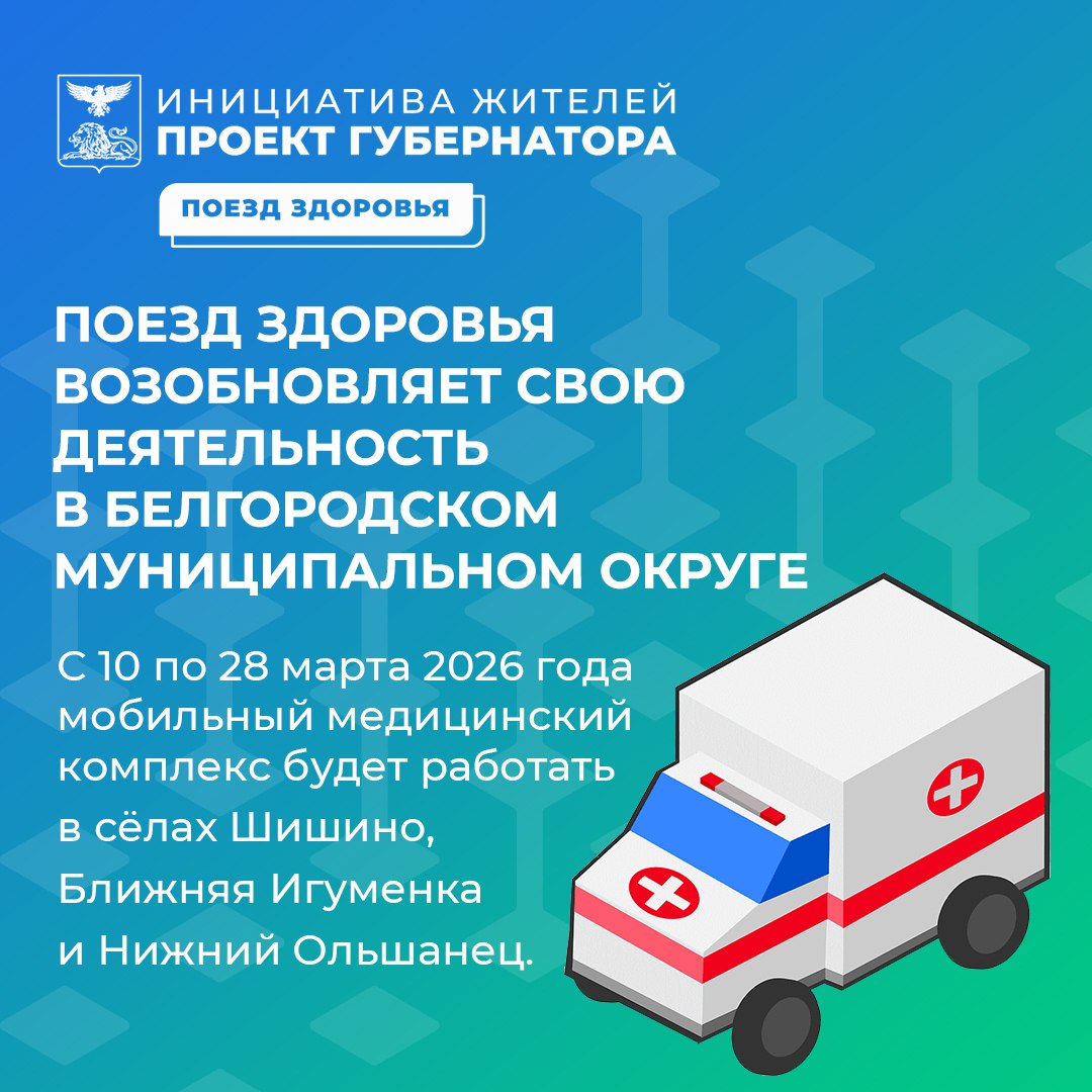 С 10 по 28 марта 2026 года мобильный медицинский комплекс будет работать в сёлах Шишино, Ближняя Игуменка и Нижний Ольшанец.
